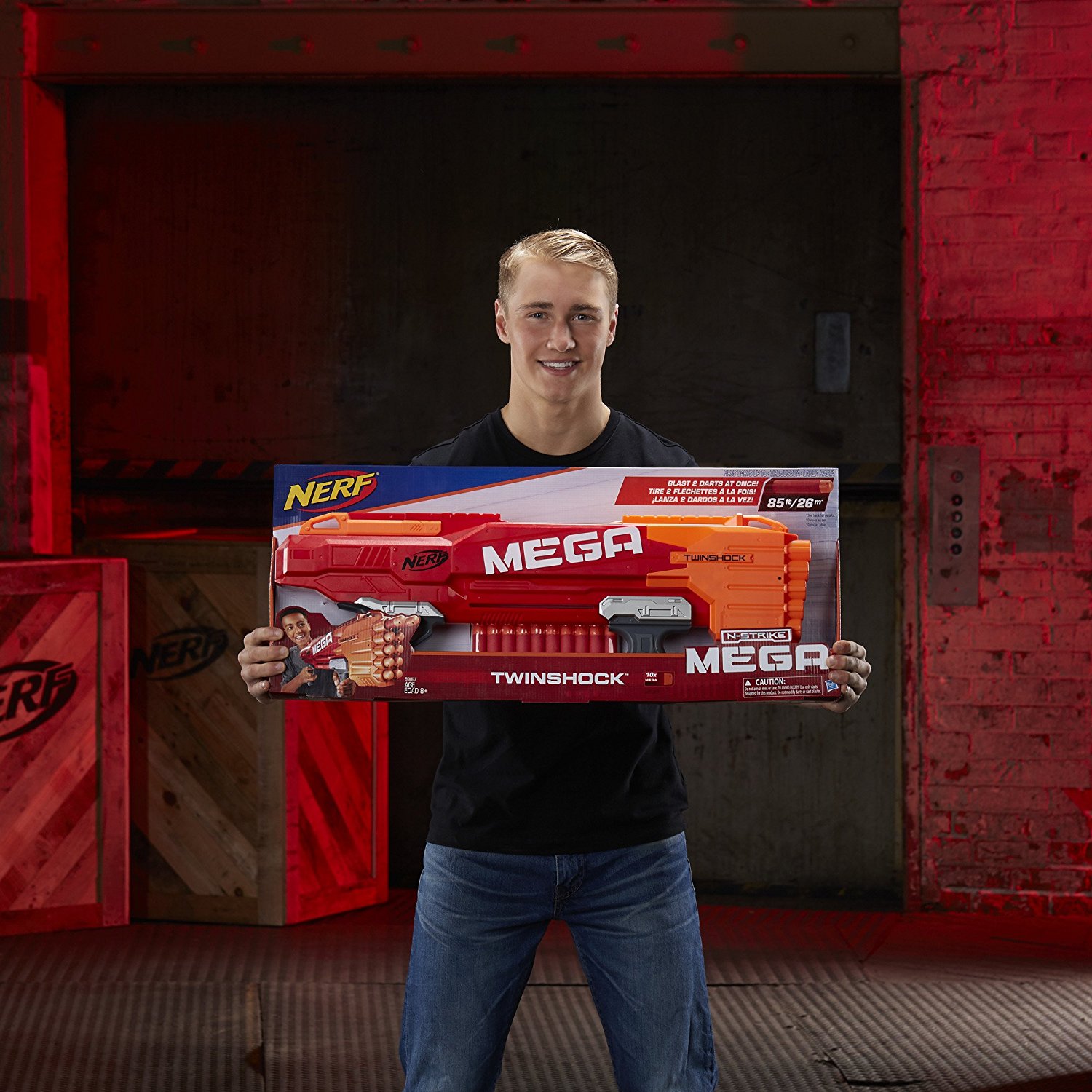 Купить бластер Hasbro Нерф Мега Твиншок (артикул для поиска B9893) вы можете у нас на сайте, для этого нужно иметь только желание порадовать своего сына чем-то по-настоящему интересным.
