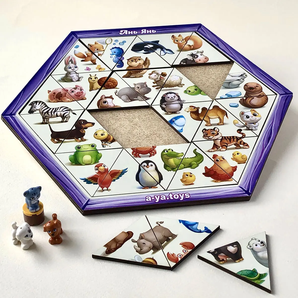 ПодробнееДеталі у вигляді трикутників, а сама основа - це шестикутник. Потрібно зібрати пазл з усіх трикутників так, щоб отримати картинку з тваринами. Наглядно покажіть дитині, що таке "частина і ціле". Можна порахувати тварин і пошукати диких, домашніх, морських та наземних.