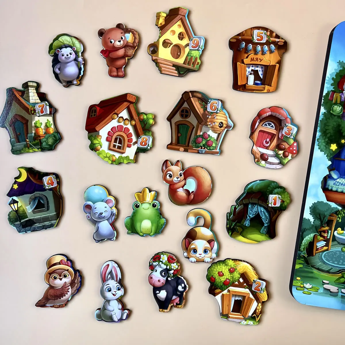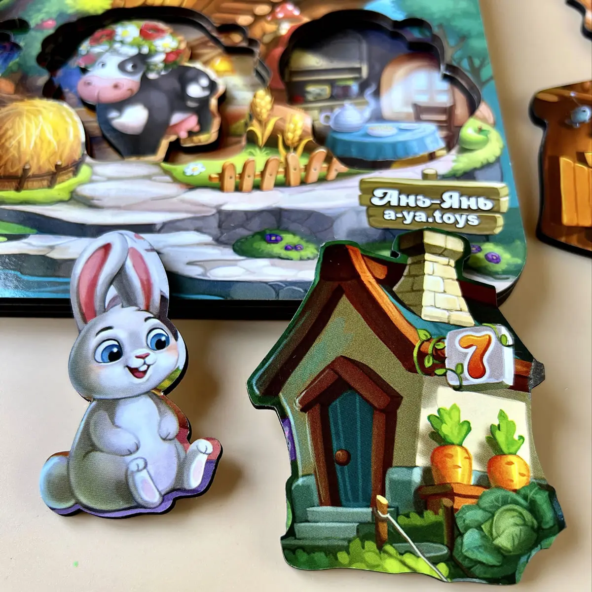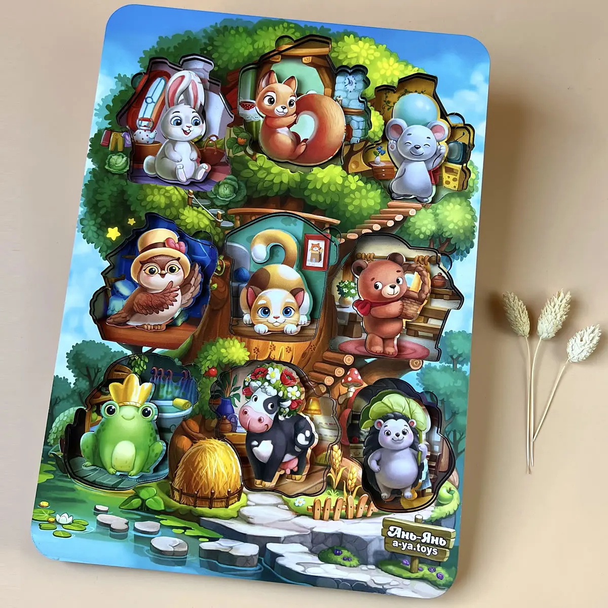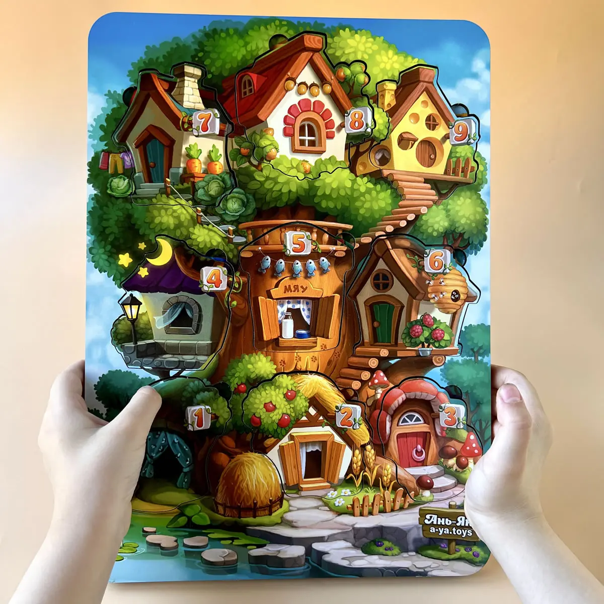 ПодробнееТришаровий вкладиш у вигляді дерева, на якому живуть 9 різних тварин і у кожного свій тематичний будиночок з номером 1-9 (для вивчення рахунку). Всі будиночки з індивідуальним дизайном як зовні, так і всередині - це як підказка для дитини, щоб вона знайшла будиночки для усіх звірів-вкладишів. Наприклад, будиночок мишки - у вигляді сиру. Вкладиші зручно діставати пальчиками.