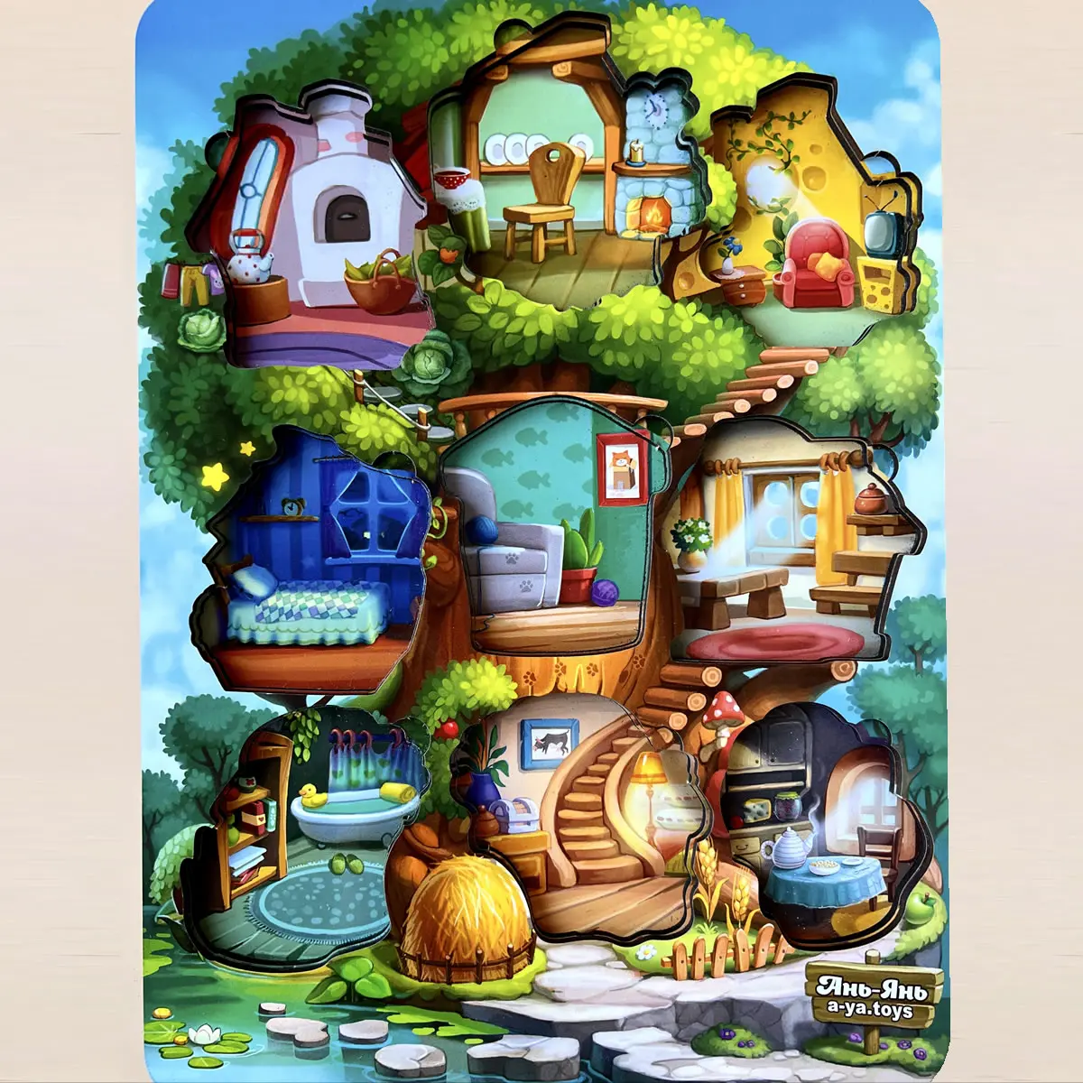 Деревянный пазл-вкладыш Где чей домик на дереве? Ubumblebees