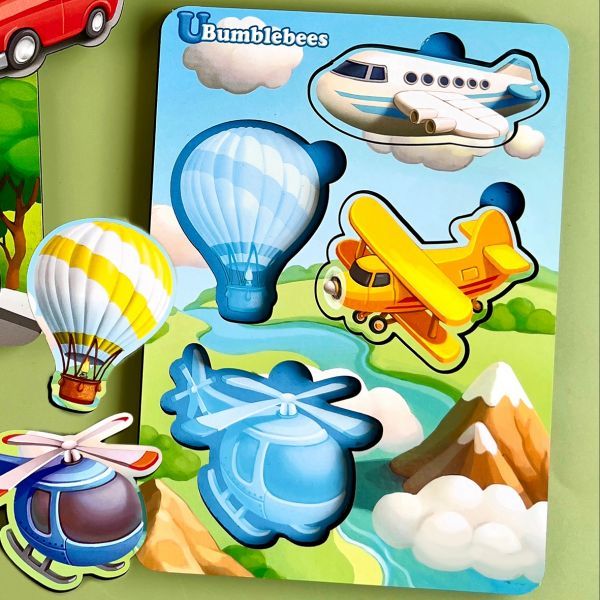 Деревянный пазл вкладыш (фон с подсказкой) Транспорт - 1 Ubumblebees