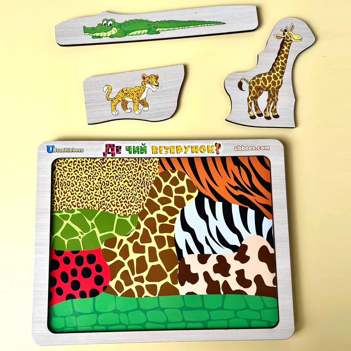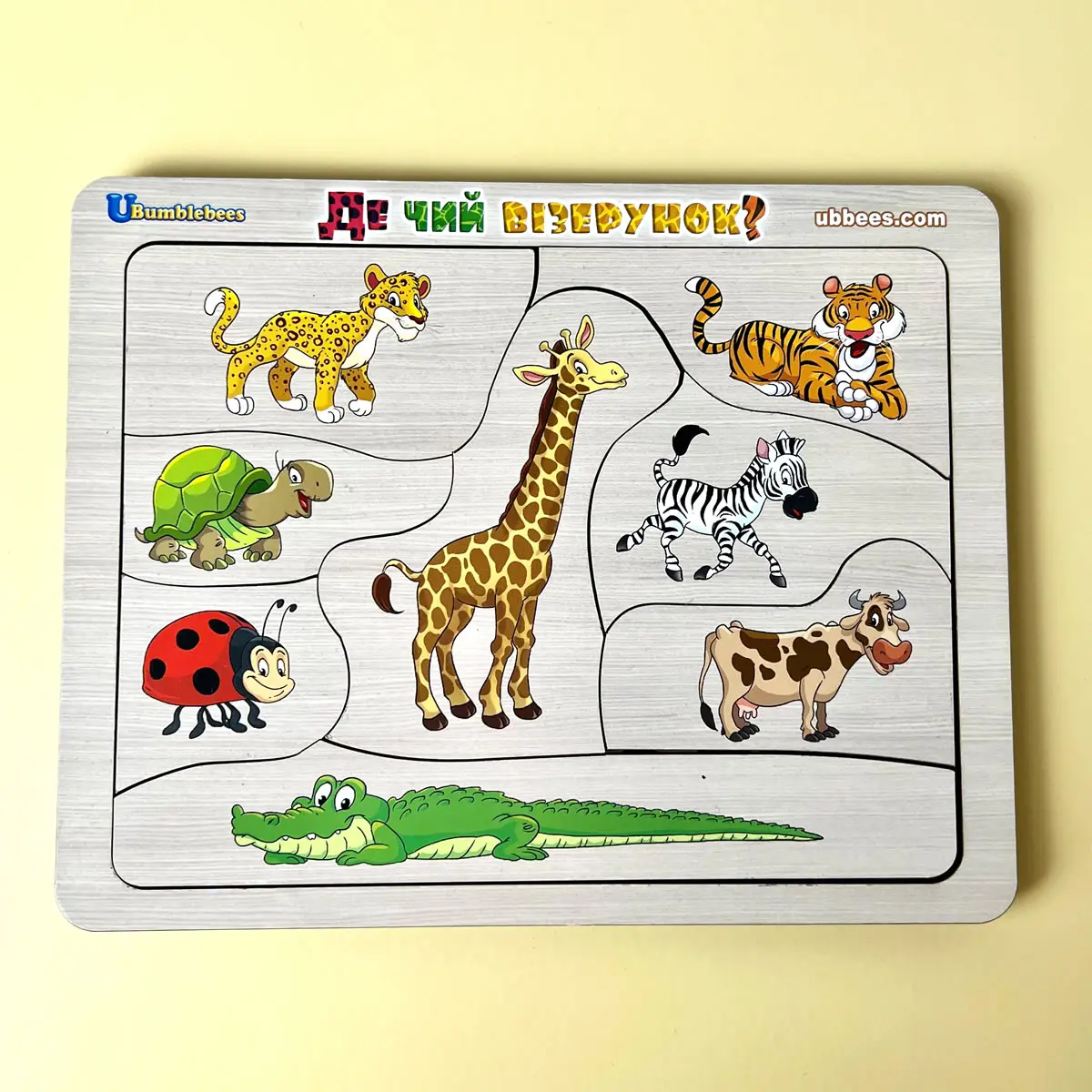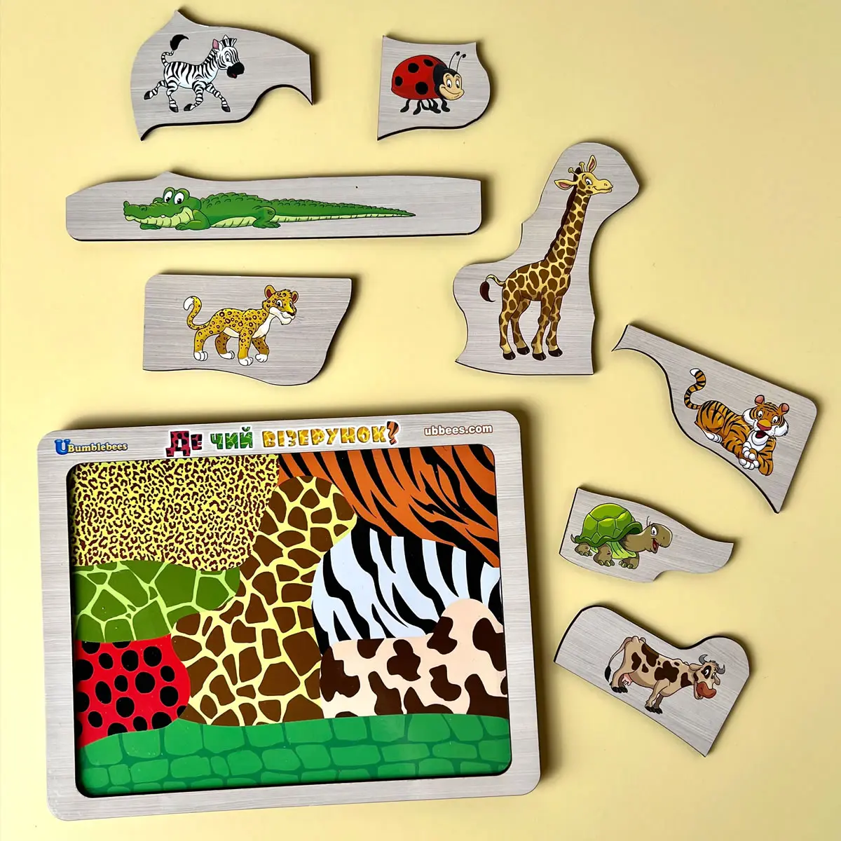 ПодробнееЦікавий сортер-пазл, який допоможе дитині легко вивчити та відрізняти 8 різних тварин. Гра на уважність. Верхній шар - це пазл з тваринами (8 різних деталей), а на нижньому - колаж з візерунків (забарвлень) цих тварин. Потрібно підібрати "Де ж чий візерунок?". Важливо проговорювати: Чим відрізняються тварини? Вони дикі або домашні? Хижак чи ні? Розвивайтеся, весело граючи!