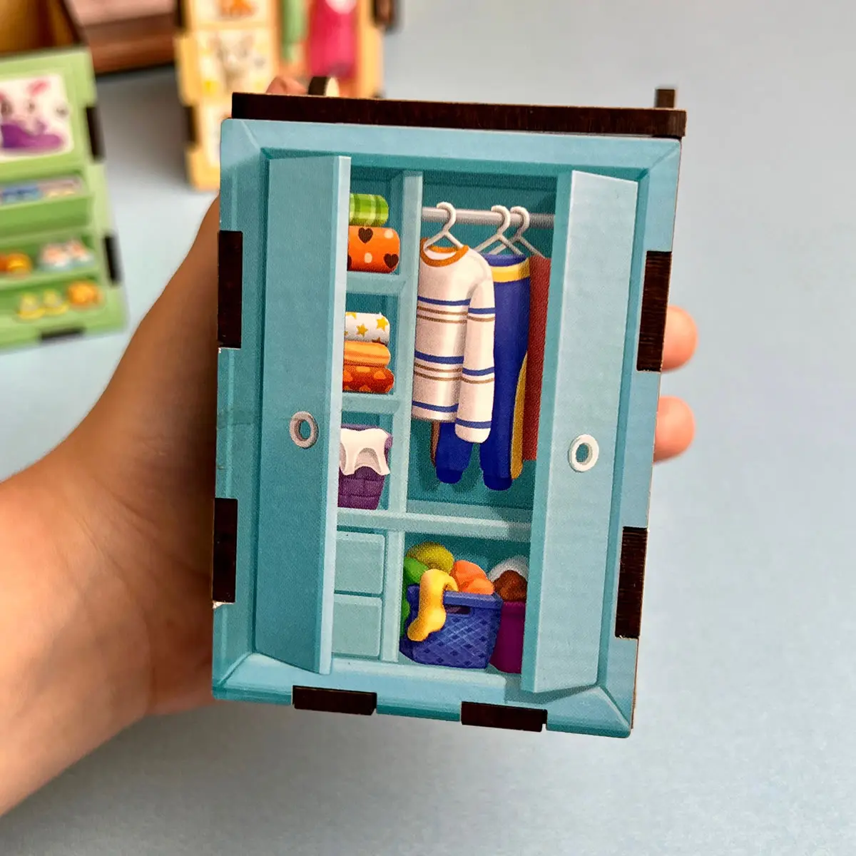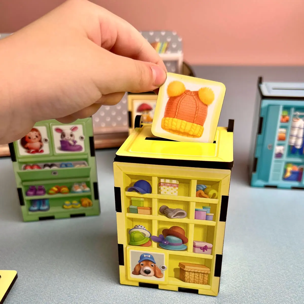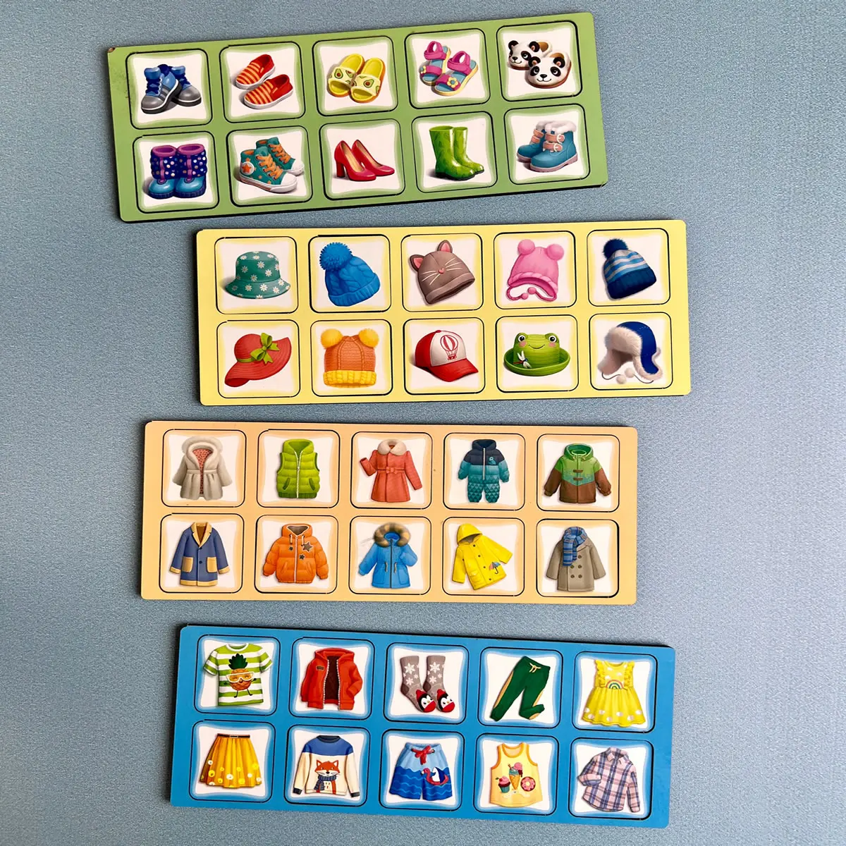 ПодробнееКожна шафа призначена для певних речей: верхній одяг, головні убори, повсякденний одяг та взуття. У наборі йдуть 40 плашок із зображенням різних видів одягу та взуття, які необхідно правильно відсортувати по тематичним шафам. Плашками можна грати в гру "Меморі".