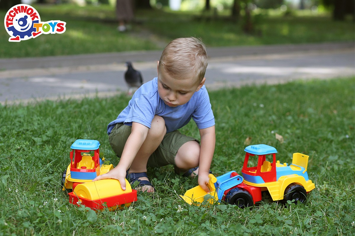 Новий "Трактор ТехноК" – це великий коток для утрамбовування асфальту, ґрунту та піску. З ним можна придумати безліч сюжетно-рольових ігор вдома та на дворі. Трактор стане у пригоді для будівництва доріг, мостів та автостоянок. З котком малюк відчує себе справжнім будівельником.
