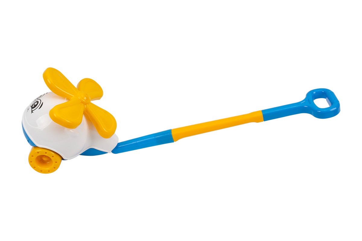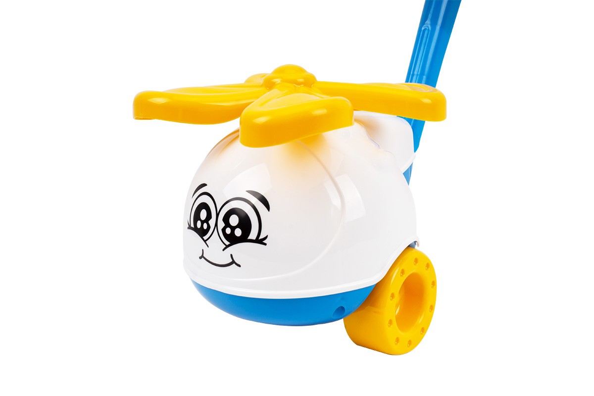 Ця каталка оснащена довгою ручкою (при потребі можна розкласти та зручно транспортувати чи зберігати), стійкою конструкцією, яка забезпечує зручне управління і комфортне тримання для маленьких ручок. Розкручуючи колеса каталки, дитина активує особливу функцію - сам гвинтокрил розпочинає свій політ!