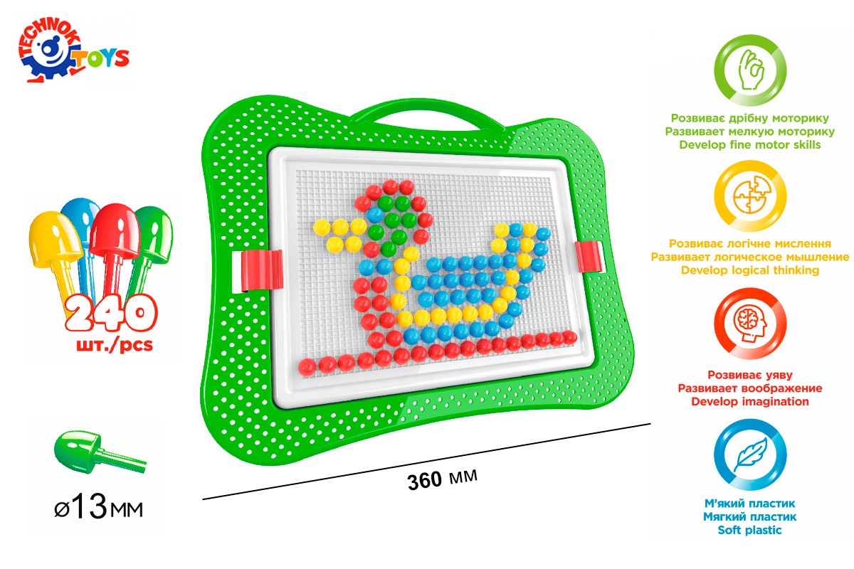 ПодробнееМозаїка складається зі зручного пеналу-саквояжу з двома фіксаторами, 240 фішок 4-ох кольорів (13 мм).
