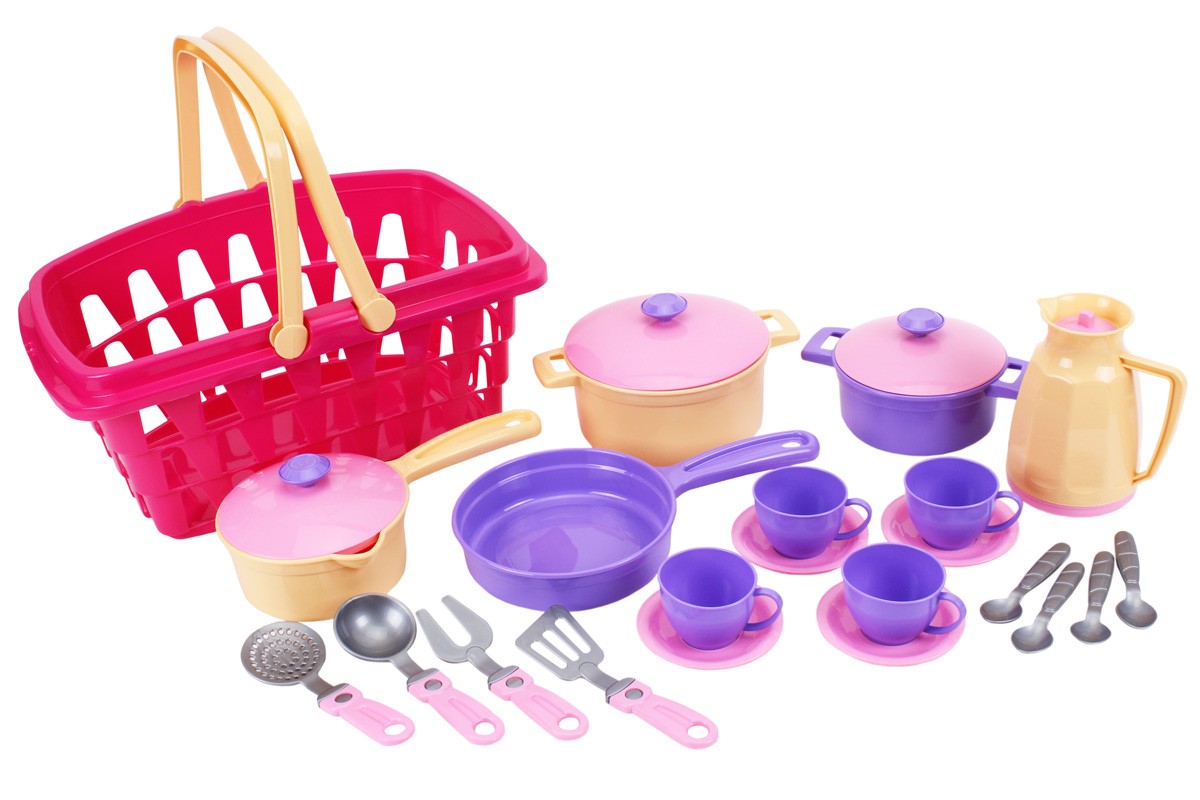 ПодробнееКухонний набір у місткій корзині – справжня знахідка для маленької господині. Яскраві кольори та різноманіття посуду неодмінно привернуть увагу малечі та батьків.