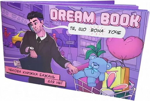 Dream Book - Чековая Книжка желаний: Для неё (Укр) - это замечательный подарок для Вашей второй половинки. В чековую книжку входит 12 чеков (желаний), которые Вы беспрекословно обязуетесь выполнить для неё (как тот банк, который обналичивает денежные чеки).