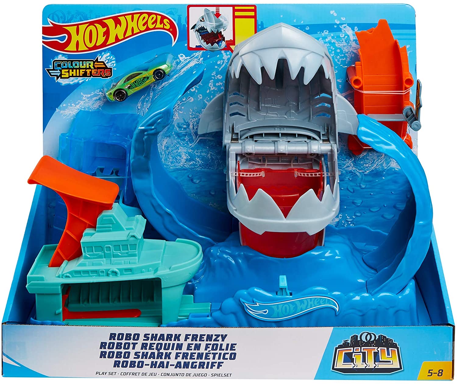 Игровой набор Хот Вилс Голодная акула-робот Измени цвет Hot Wheels City Color Changing Robot Shark