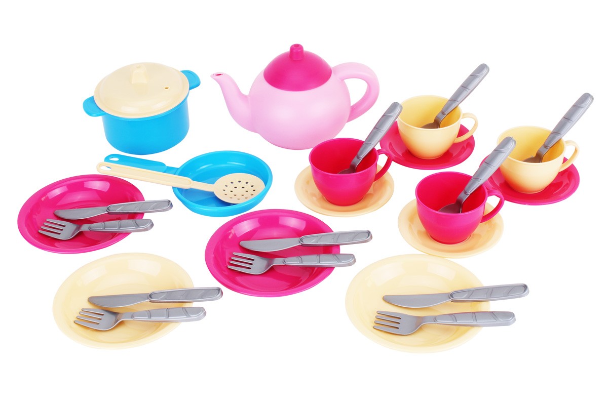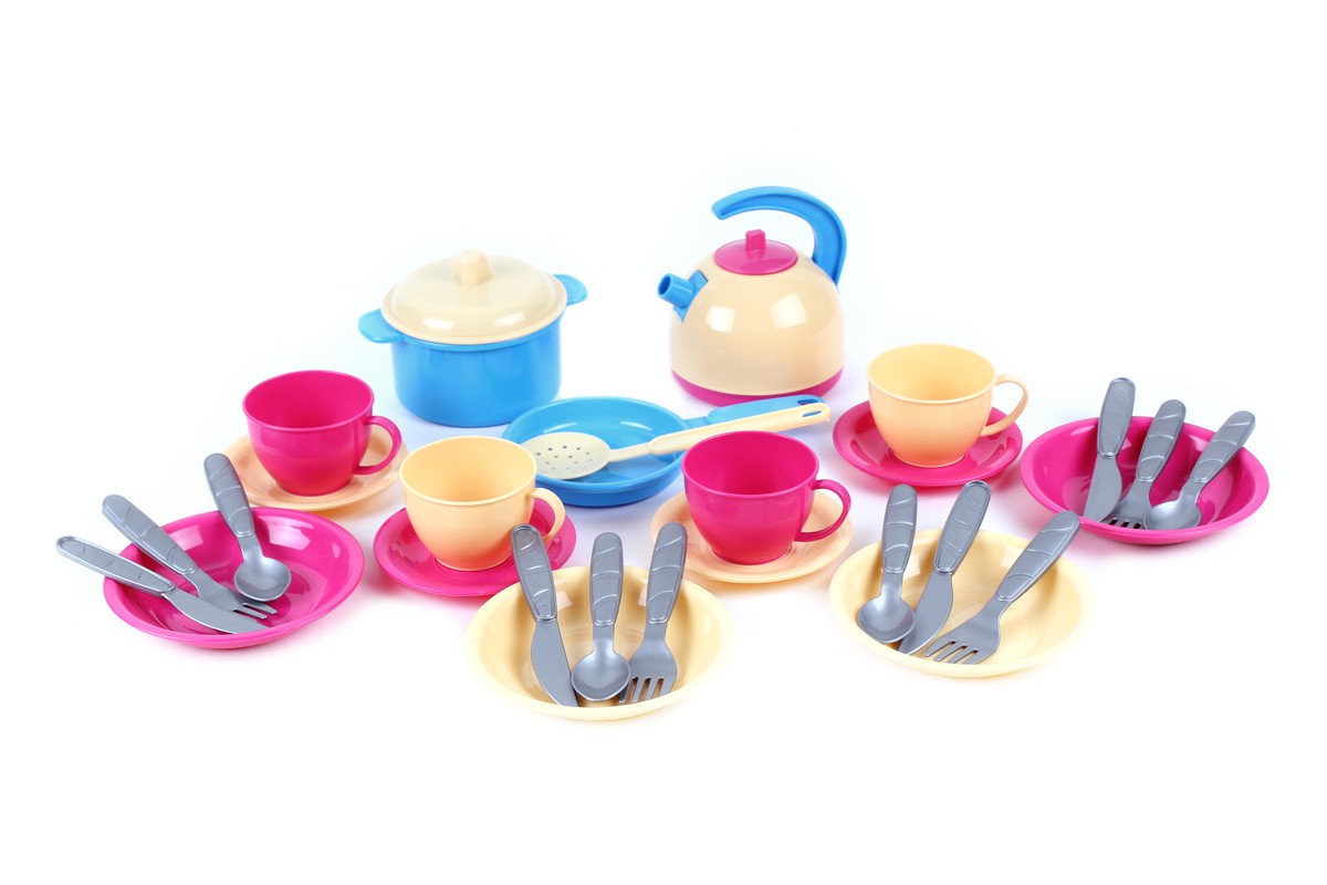 Різні сюжетно-рольові ігри розвивають у дітей уяву та фантазію, мислення, дрібну моторику, комунікативні та соціальні навички.Набір посуду виготовлений у ніжних кольорах, які так полюбляють юні принцеси.