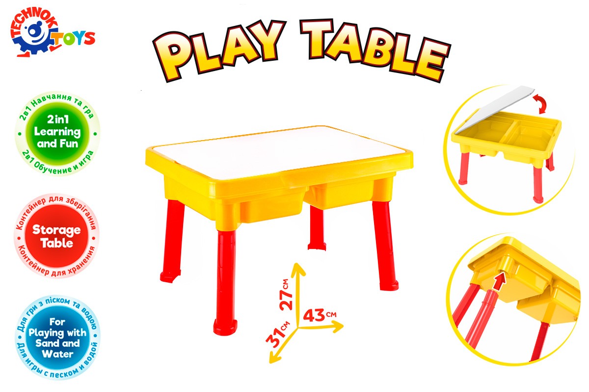 Тут у пригоді стане "Ігровий столик" від ТехноК. Це іграшка 2 в 1 – місце для гри й творчості та водночас місткий контейнер для зберігання олівців, фломастерів, гумок та іншого дріб'язку. Столик займе почесне місце в кожній дитячій ігровій кімнаті.