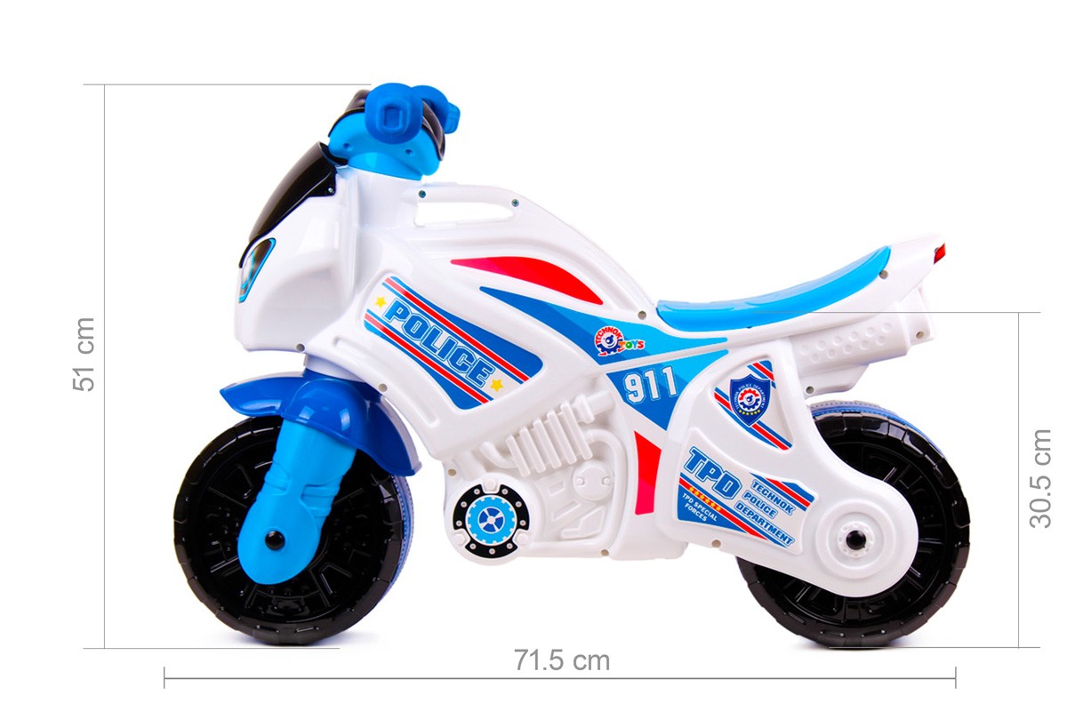 ПодробнееКожен малюк хоче відчути себе справжнім героєм. Бути поліцейським - це ж так почесно! Для наших маленьких патрульних ми розробили спеціальний транспорт - іграшку «Мотоцикл ТехноК». Байк білого кольору з яскравими «поліцейським» наклейками стане улюбленою іграшкою ваших дітей.