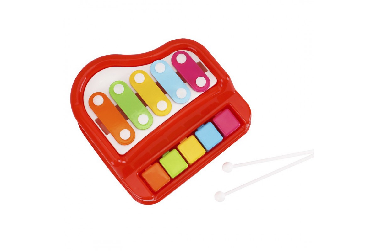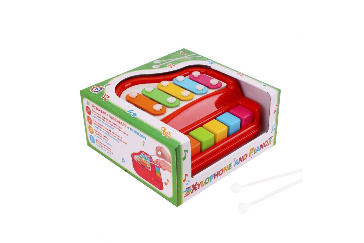 Пропонуємо Вам сучасний варіант ксилофону для найменших. Іграшковий ксилофон-фортепіано від ТехноК поєднує в собі 2 музичні інструменти: ксилофон та фортепіано з клавішами. Для гри на ксилофоні іграшка комплектується 2-ма спеціальними паличками. Іграшку рекомендуємо діткам від 2- х років, хоча вона, безперечно, цікава і для менших дітлахів.