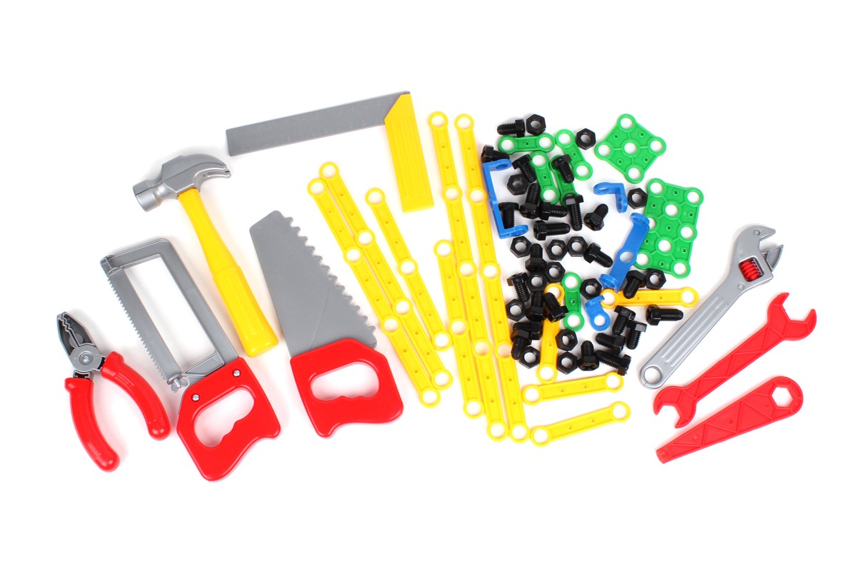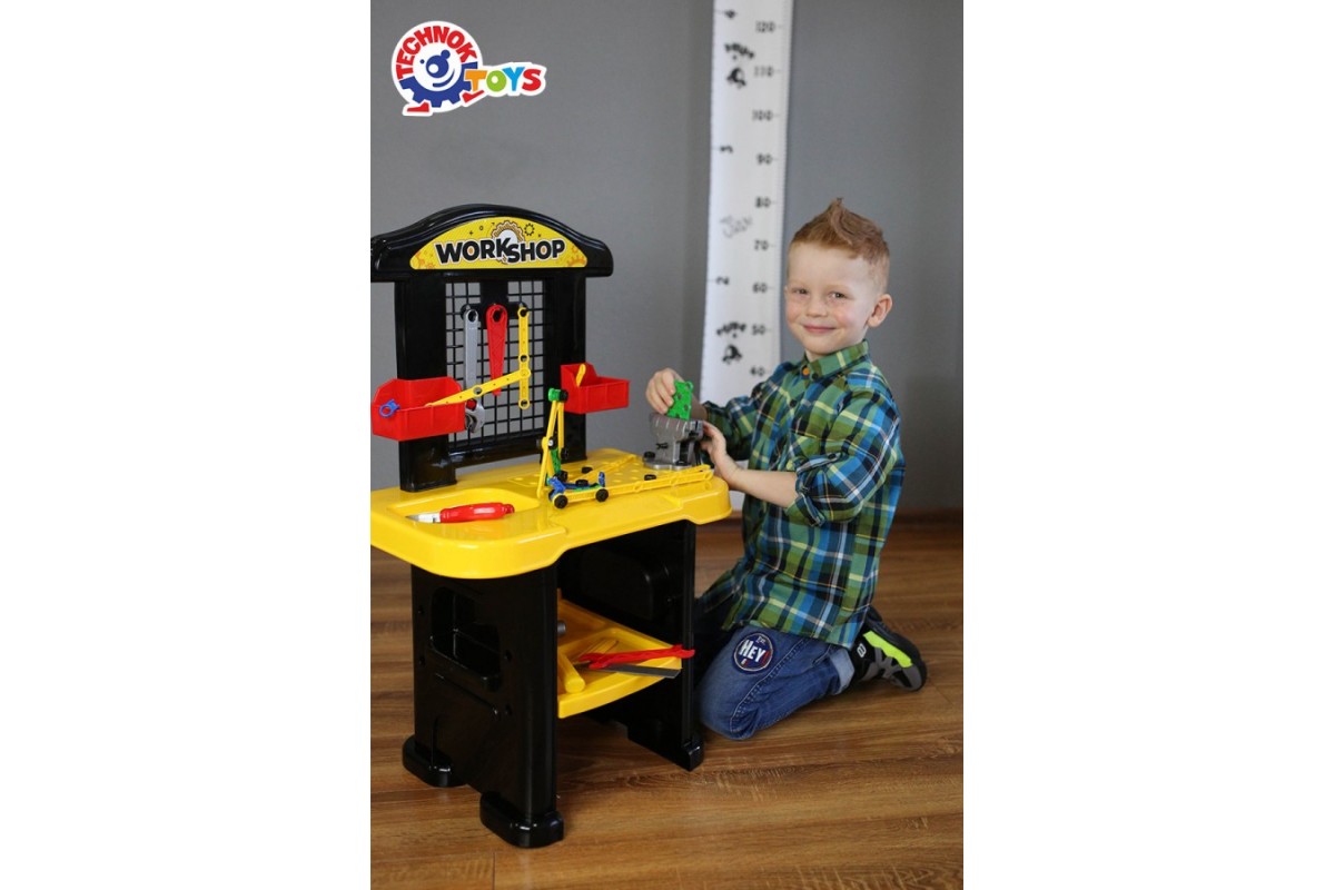 ПодробнееСправжня іграшкова «Майстерня» для маленьких таткових помічників. Великий, зручний та стійкий стіл зі стільницею з отворами та різьбою для гвинтів, набір інструментів, планки, гайки та болти - все, що потрібно для юних майстрів.На стільниці є заглиблення для дрібних деталей, вигравіювана лінійка для швидких замірів, а також лещата для фіксації. На гачках, корзинах та полиці можна розмістити всі елементи та інструменти набору. Отвори з різьбою на поверхні стільниці призначені для кріплення болтами планок. Відстані між отворами в планках та на стільниці збігаються і майстерня перетворюється на справжній конструктор - можна не тільки ремонтувати, а й створювати нові механізми.В наборі є все для захопливої гри: пилки по металу та дереву, розвідний ключ, кутник, молоток, плоскогубці, лещата, ключ рожковий, викрутка, 17 планок різного розміру, 4 фігурні деталі та кутники, 25 болтів та 15 гайок. Всі елементи виготовлені з якісного міцного пластику без запаху.З іграшковою "Майстернею" дитина познайомиться з основними інструментами та опанує навички роботи з ними. Такі ігри розвивають дрібну моторику рук, фантазію, уяву, старанність та акуратність.Іграшкова «Майстерня» від ТехноК неодмінно стане улюбленою іграшкою для ваших малюків, дозволить хлопчикам разом з татусем проводити час цікаво та корисно.Розміри іграшки у зібраному вигляді 74 х 46 х 29 см, пакування – яскрава коробка (57,5 х 48,5 х 15 см.)У наборі 9 інструментів та 61 аксесуар.