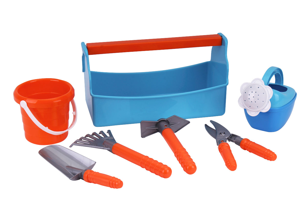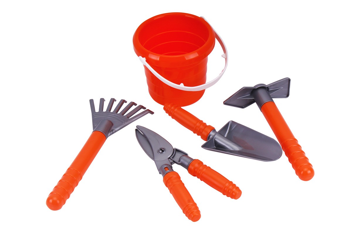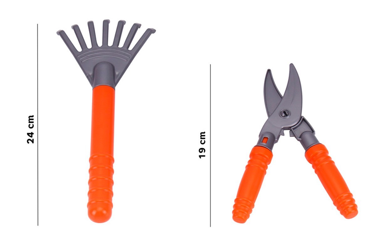 В наборі: секатор – 1 шт., совок – 1 шт., граблі – 2 шт., сапка – 1 шт., відерко – 1 шт., лійка – 1 шт., органайзер – 1 шт.