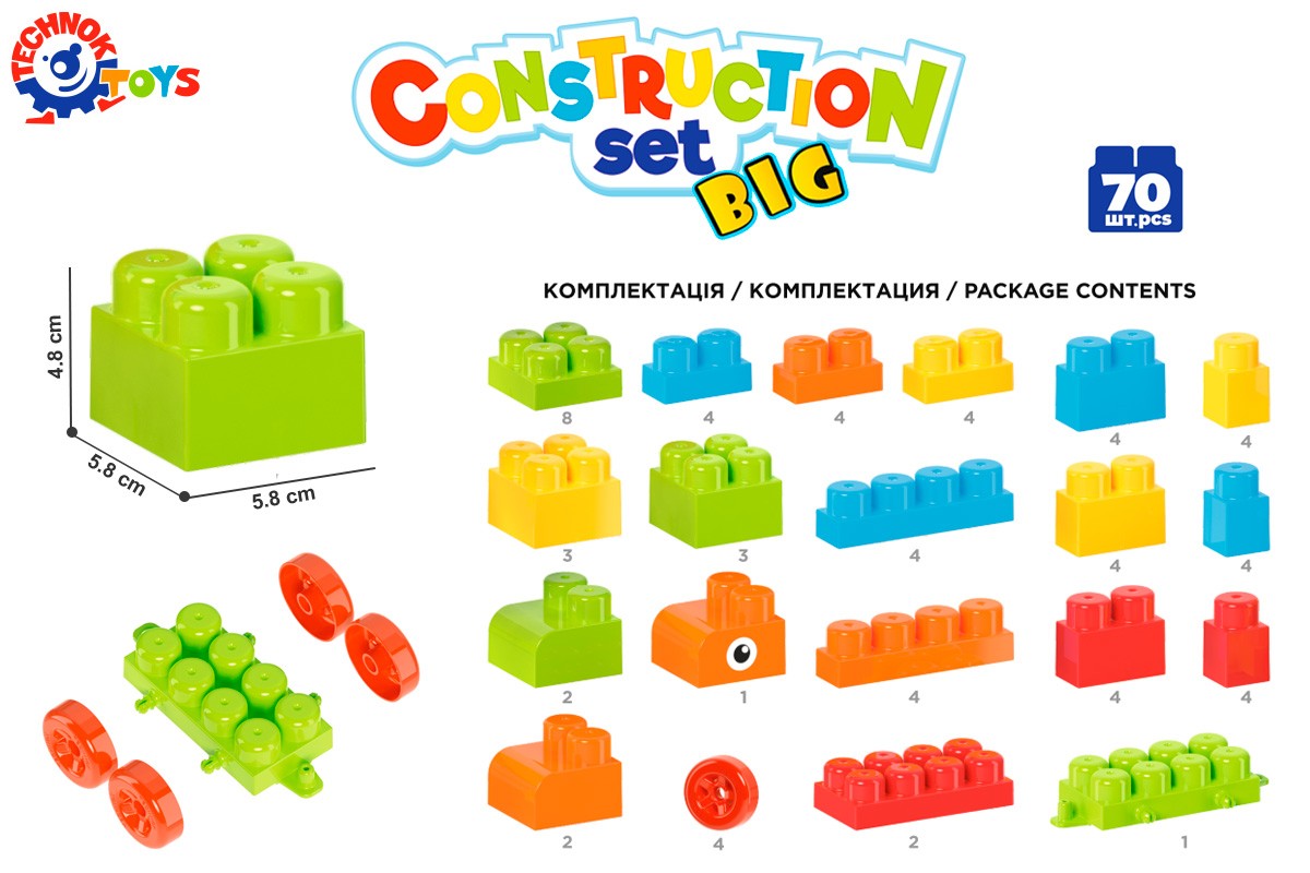 ПодробнееКонструктор – одна з найпопулярніших іграшок серед дітей різного віку. Адже це не тільки захоплива гра, а також корисне розвивальне та навчальне приладдя. Можна сконструювати автомобіль, будиночок, космічний корабель та вивчити додавання і дроби!У наборі 70 великих деталей, зручних для діточок вже від 2-х років. Цеглини зі зрізаними кутами для кораблів чи потішних тваринок. Платформи з колесами – взагалі знахідка. Можна збудувати автомобіль, потяг чи літак. А ще платформа стане в пригоді при конструюванні роботів.Фігурні елементи із зображеннями "очей", нанесені методом тамподруку – цікава опція, яка додає "життя" конструктору. Зібрані рибки та фламінго відразу "оживають", з ними діткам цікавіше гратися та, особливо, розмовляти.