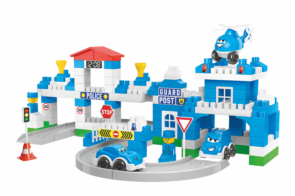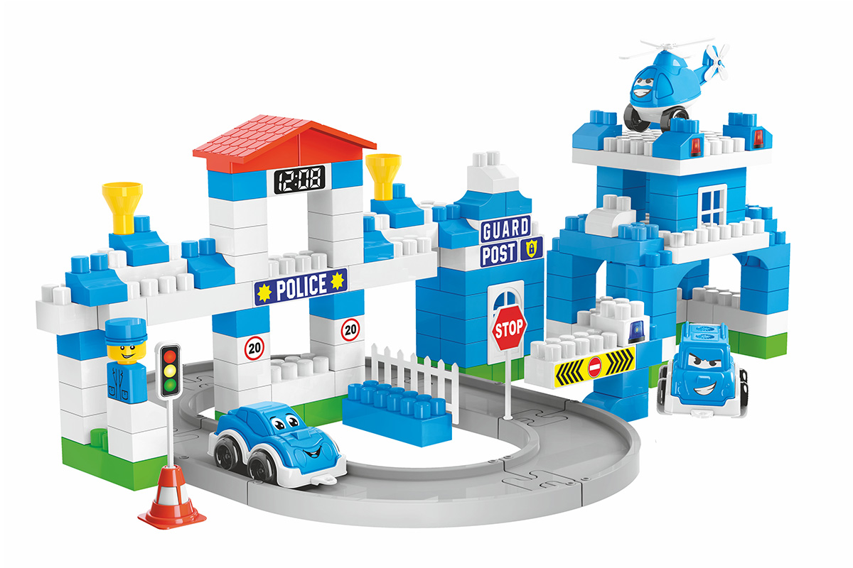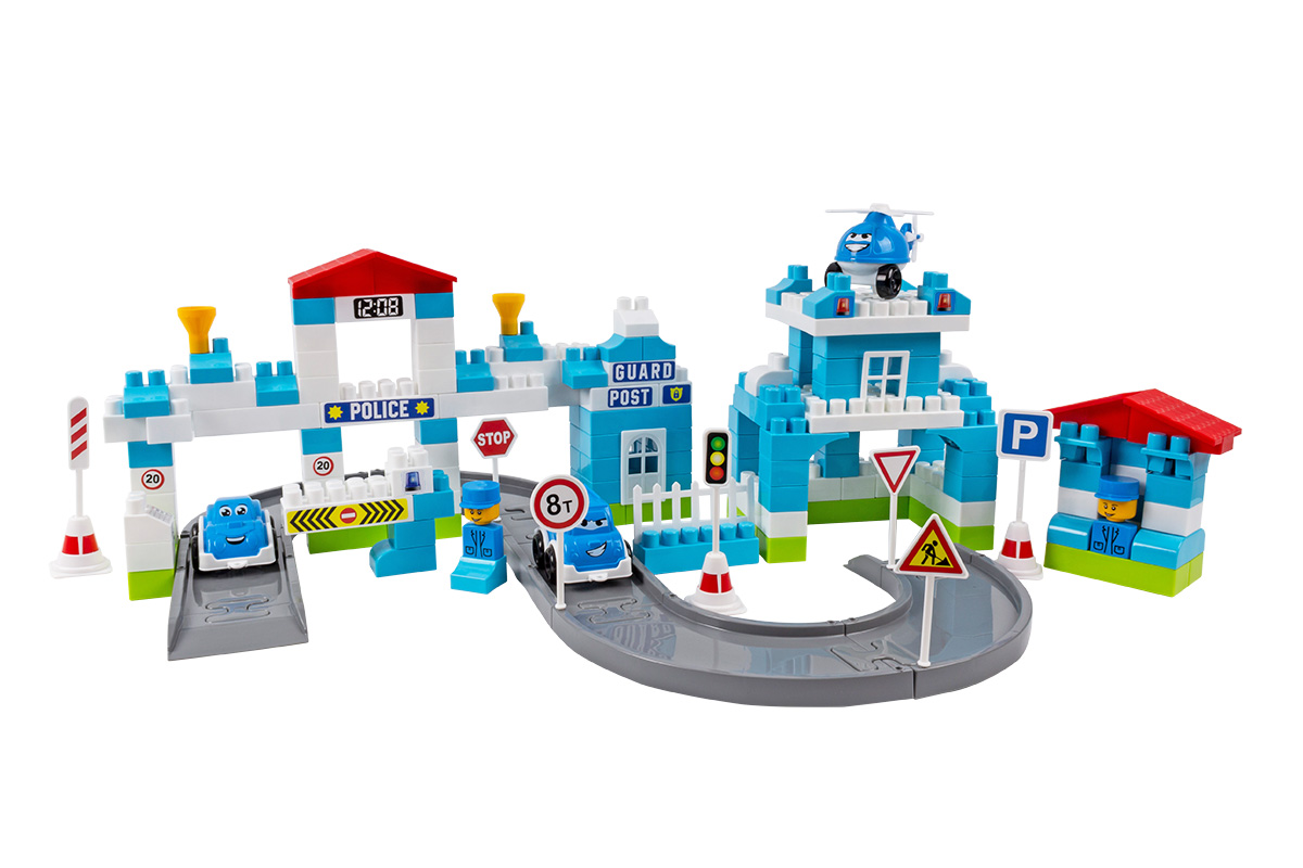 1. Різноманітність деталей: конструктор містить велику кількість різноманітних деталей та знаків - 180 деталей. Вражає розмаїття форм деталей - 15 видів архітектурно-будівельних елементів, 5 елементів дороги, 7 дорожніх знаків, 3 двоколірні підставки, 2 фігурки поліціянтів в уніформах. та 2-і великі 10х10 пластини. Ваша уява буде єдиним обмеженням!