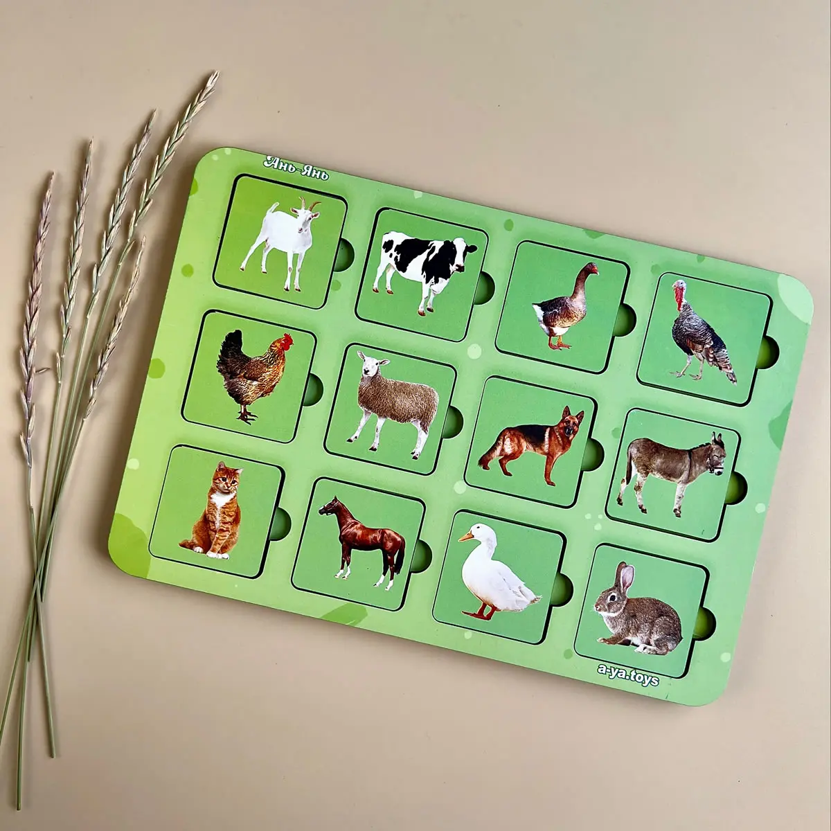 Деревянный пазл-сортер Мама и малыш домашние животные Ubumblebees