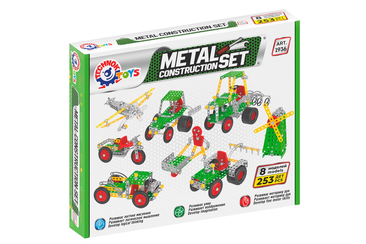 Металевий конструктор "Фермерська техніка ТехноК" (253 деталей) із розширеними дизайнерськими можливостями завдяки цікавим різноколірним пластиковим деталям. В комплекті покрокові кольорові інструкції для збирання 8 різноманітних моделей фермерської техніки.