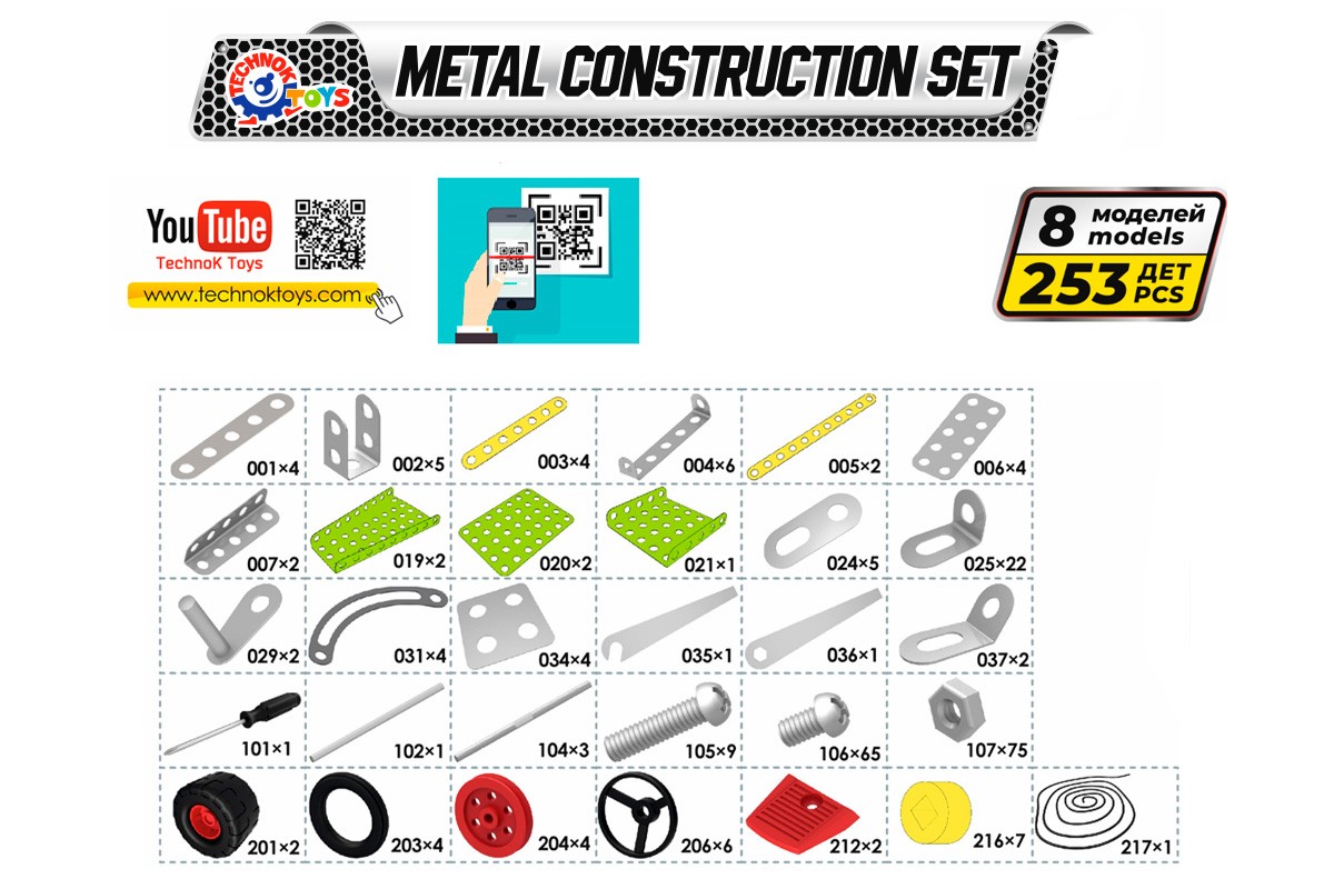 Металеві конструктори ТехноК вирізняють високою якістю та різноманіттям деталей, цікавим поєднанням металевих та пластикових запчастин. У кожному наборі є викрутка та ключі для збирання моделей. На допомогу юним механікам – кольорова, детальна покрокова інструкція.