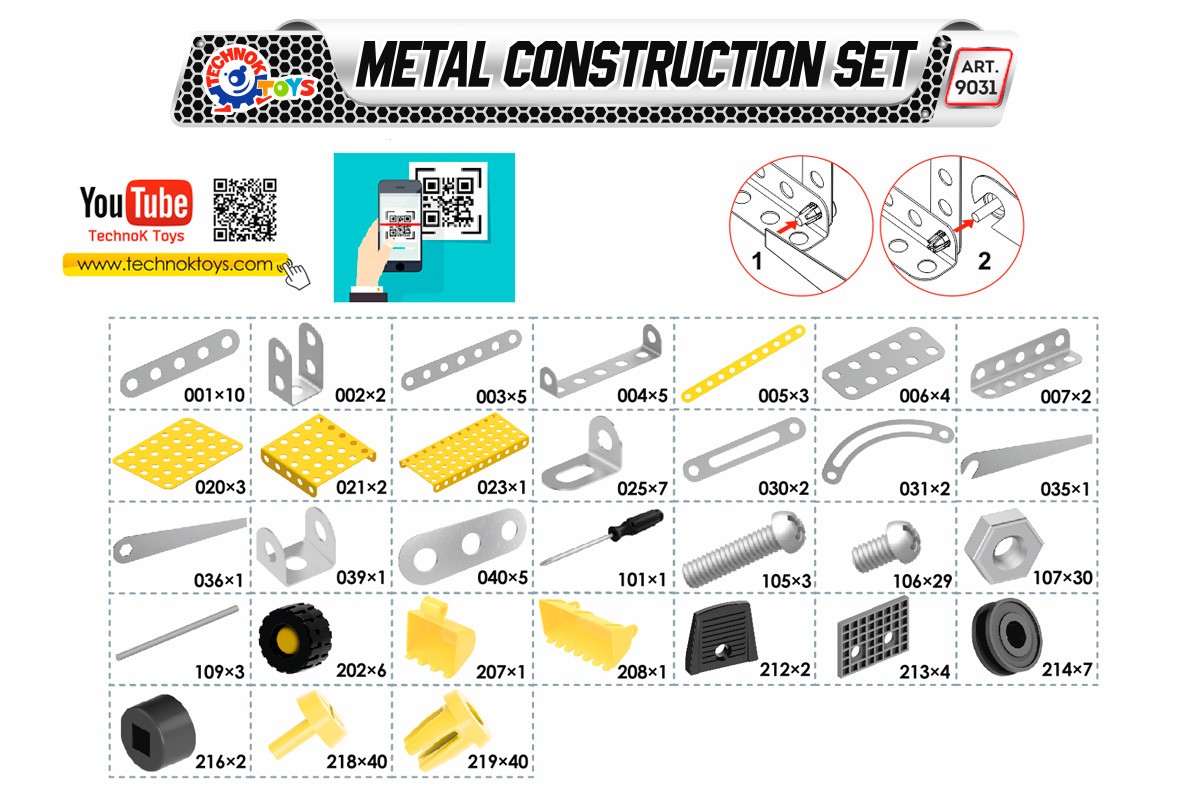 Металевий конструктор нового покоління. Перевага іграшки - металеві деталі різних кольорів. Завдяки цьому конструктору дитина може розвивати фантазію, складаючи різні моделі, і отримувати практичні навички роботи з металевими виробами, що стане в нагоді у дорослому житті.
