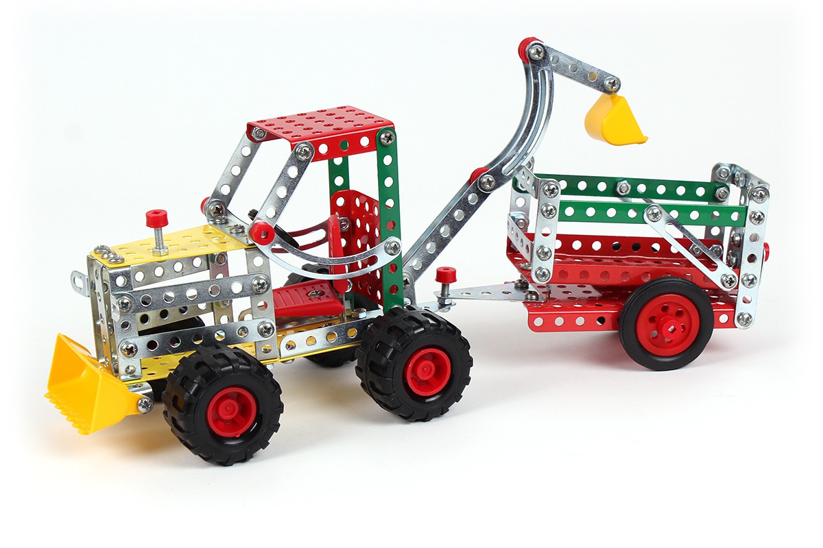 На цих конструкторах виросло багато поколінь відомих винахідників, механіків та інженерів. Завдяки цій іграшці хлопчаки (та й дівчатка) здобувають перші навички з’єднання деталей гвинтами та гайками, розвивають фантазію та просторову уяву. Модель "Трактор з причепом ТехноК" сподобається любителям дитячої функціональної агро і сільськогосподарської техніки.Крім трактора з цього великого набору деталей юний інженер зможе зібрати інші модельки, які підкаже йому фантазія.