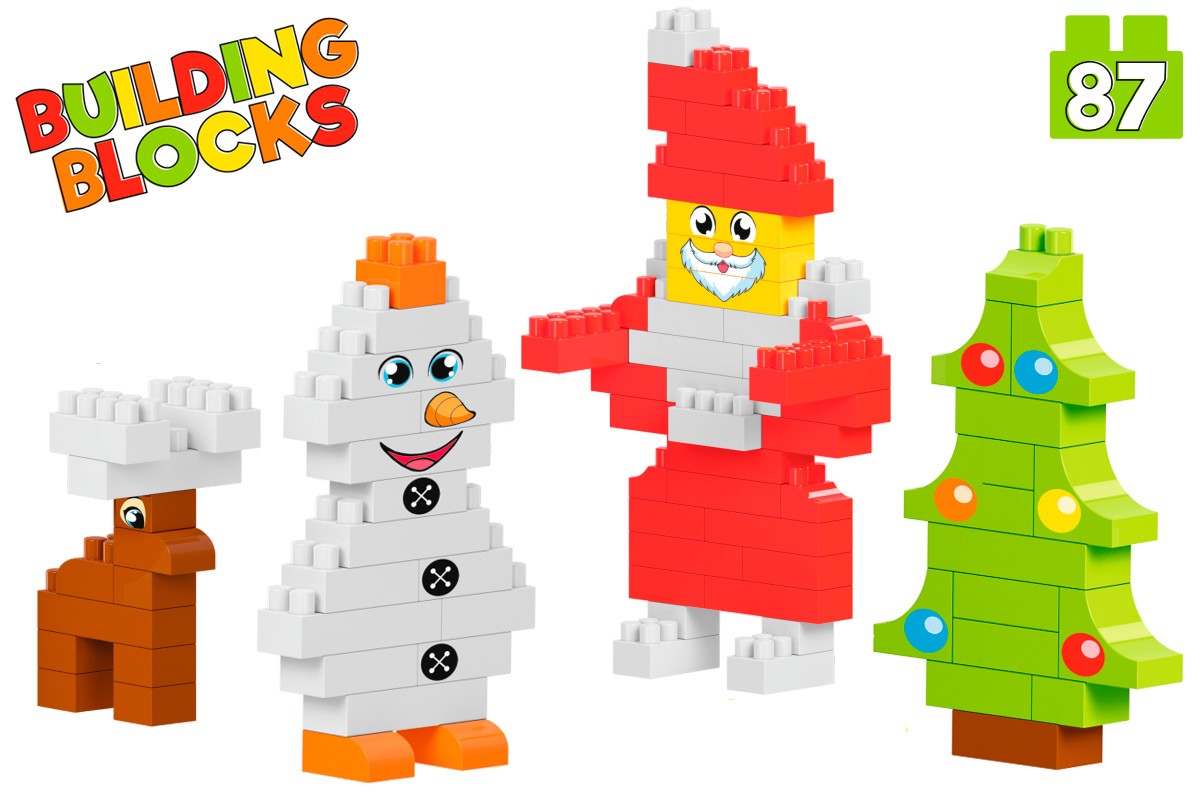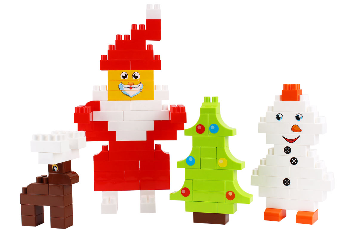 Спеціальна кольорова гама для святкових героїв. У наборі необхідна кількість елементів, щоб одночасно зібрати Ялиночку, Сніговика, Санту та Оленя. Святкового настрою фігурам додають наліпки: оченята, ґудзик та кульки, борода, носик.
