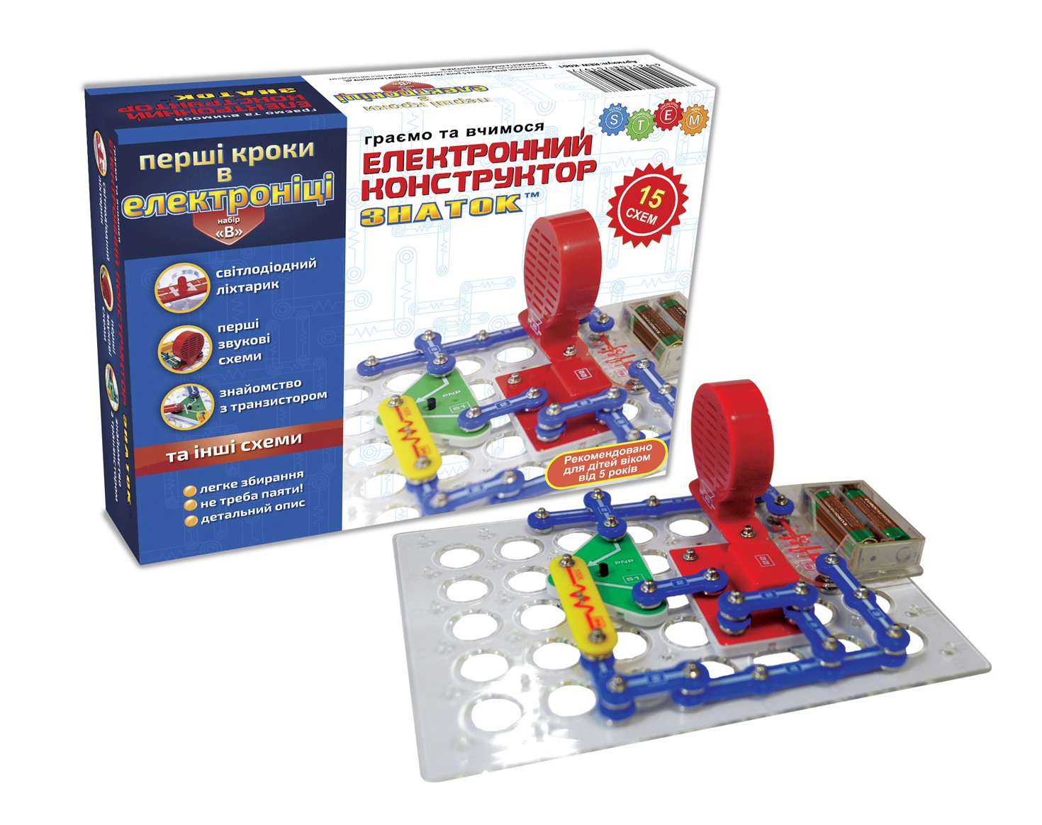 Конструктор- ЗНАТОК "Первые шаги в электронике" (15 схем, набор В)