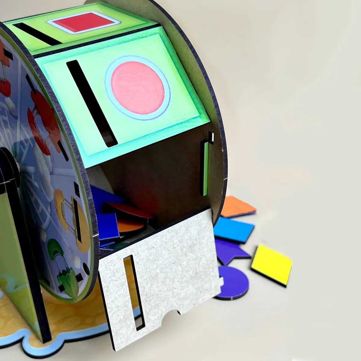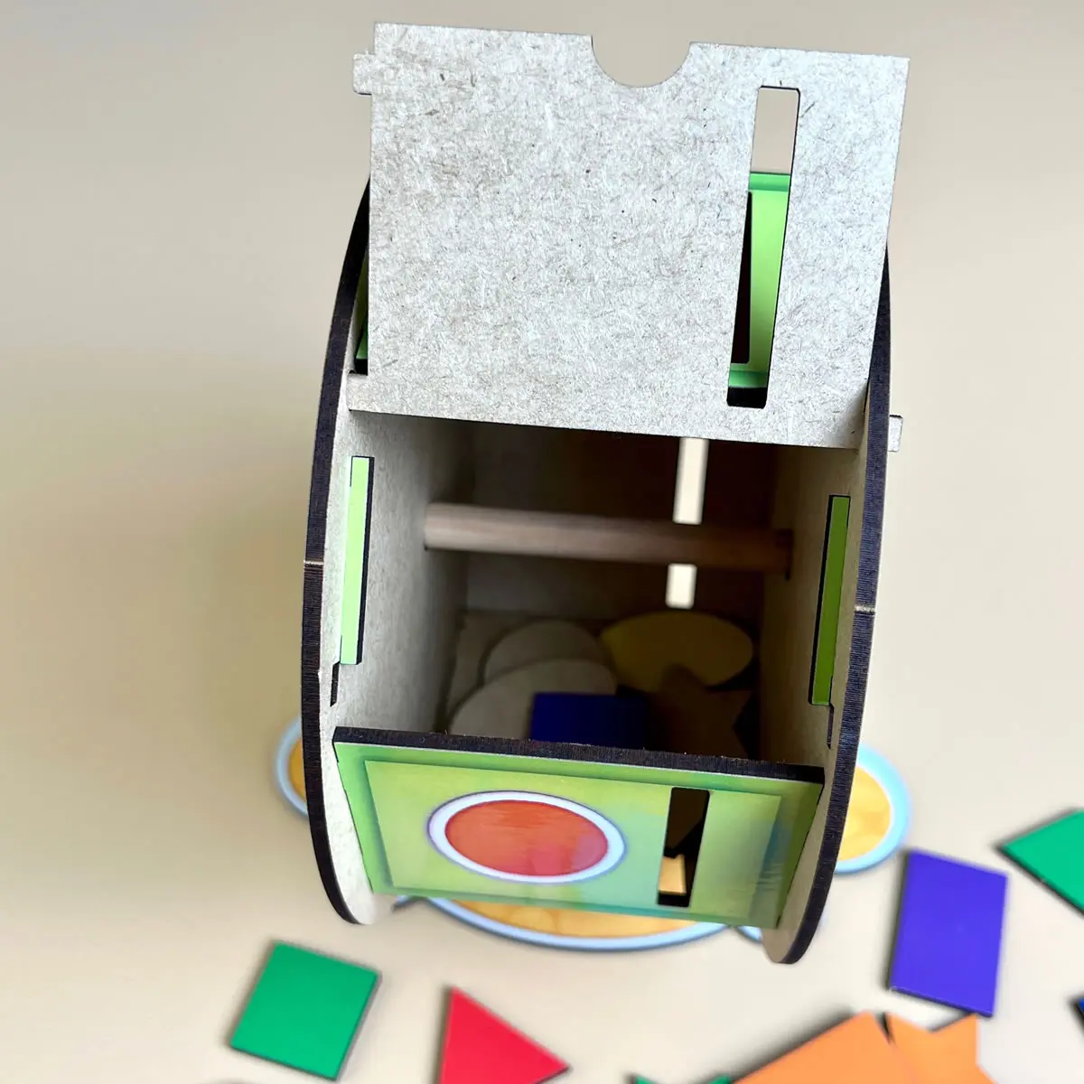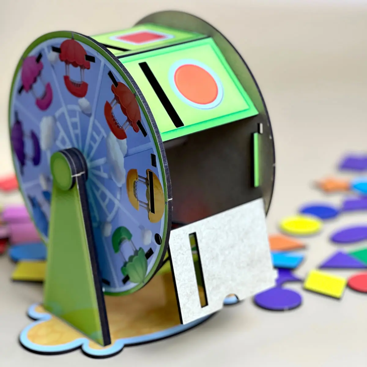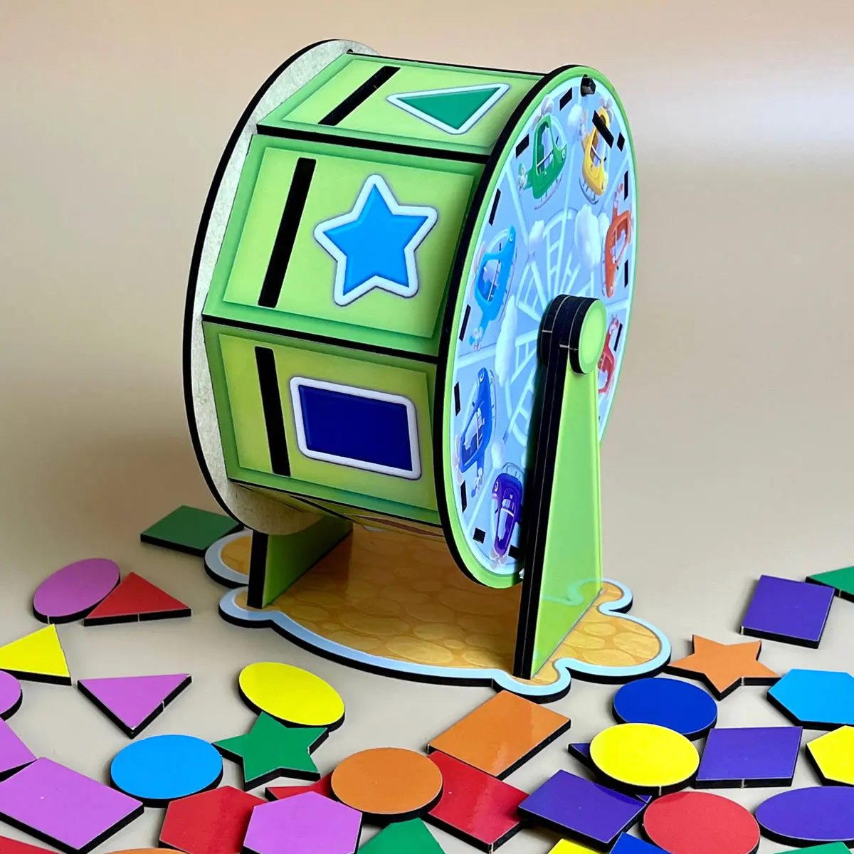 Як грати: дитині потрібно правильно все розсортувати, обертаючи барабан.Вивчайте кольори, рахунок та фігури.Трафарети з фігур можна використовувати для малювання та тренування кисті рук малюка до письма.