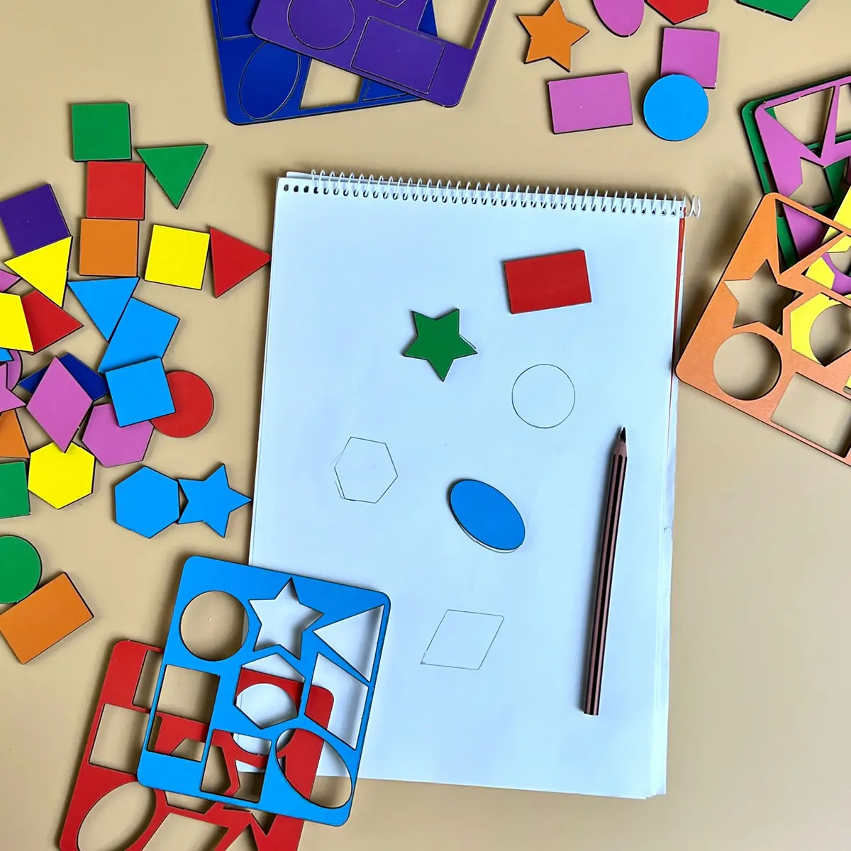 У наборі: аж 64 плашки з геометричними фігурами різного кольору для сортування