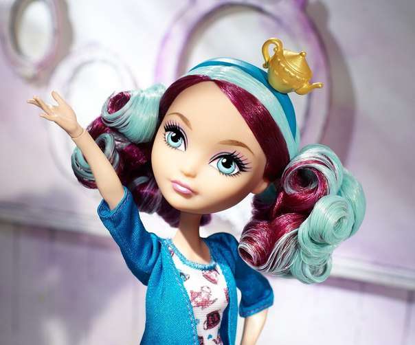 ПодробнееМеделин Хеттер, серия Базовая, Ever After High - это дочь Безумного Шляпника. Героиня смешная, воодушевляющая и владеет богатым воображением. Мечтает иметь собственный шляпный и чайный салон в сказочном мире. Меделин Хеттер дружит со всеми, но у нее есть две лучшие подруги Рейвен Квин и Кедра Вуд. Кукла очень красивая. У Меделин Хеттер кучерявые, разноцветные волосы. Нежное голубое платьице и шляпка в виде чайничка.