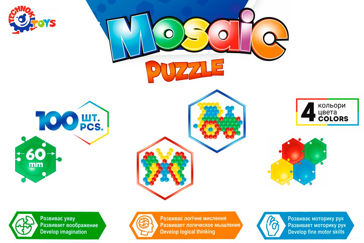 ПодробнееМозаїка-пазли складається з 100 кольорових шестикутників.