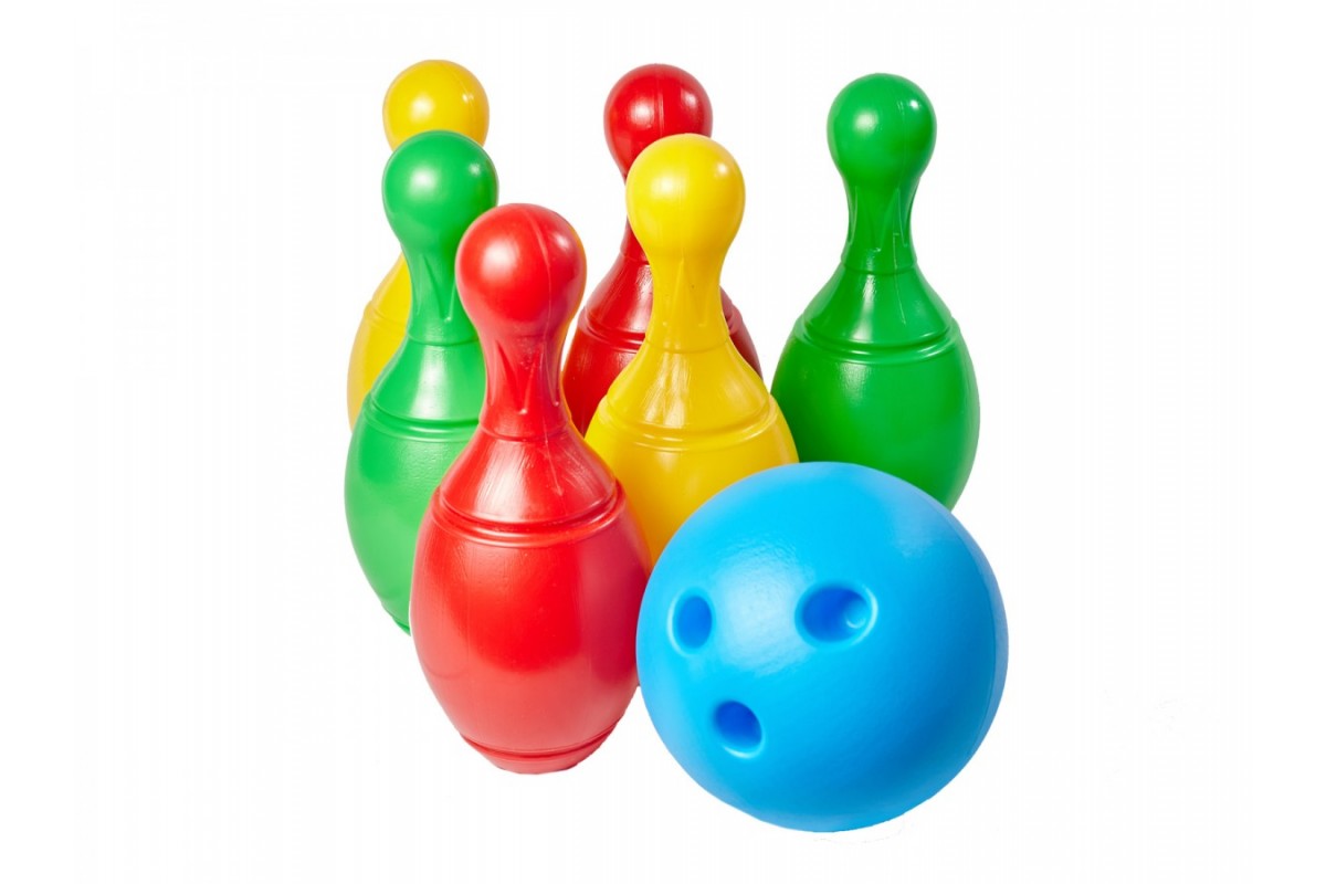 Боулінг складається із 6 яскравих кеглів і 1 пластмасового м'яча.