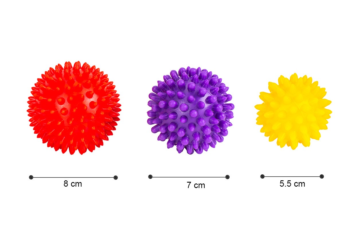М'які кольорові м'ячики, схожі на їжачків - чудовий вибір для гармонійного розвитку та веселих забав малюків. Це набір з трьох м'ячів різного розміру для захопливого та корисного дозвілля.
