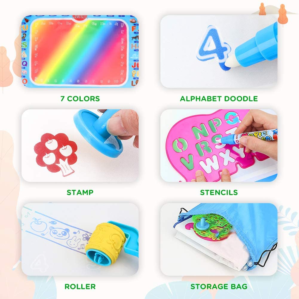 Набор для рисования водой Волшебные водные штампы большой коврик с трафаретами 100*75 см Aqua Magic Doodle Water Mat