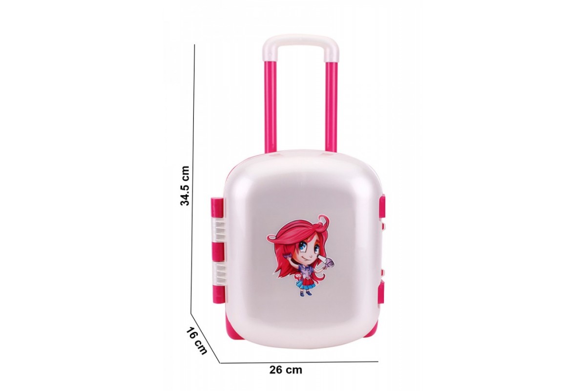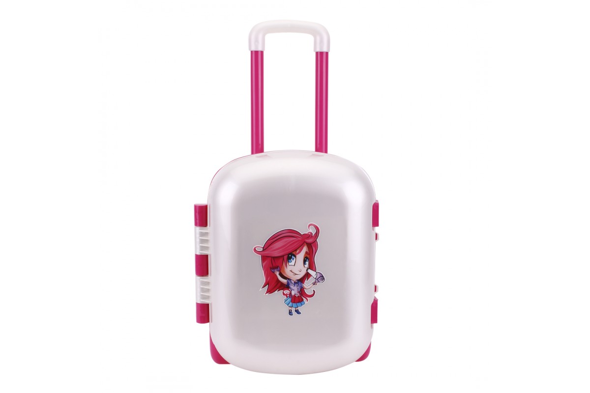 Такий набір принесе море радості маленьким модницям та зробить ігри дуже реалістичними. Розміри іграшкового приладдя оптимально розраховані для дівчаток. Також їх зручно взяти з собою на прогулянку чи у дитячий садок. Зберігати та переносити перукарські інструменти та аксесуари можна у маневровій валізі з регульованою ручкою.
