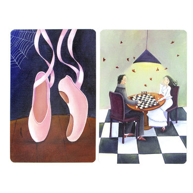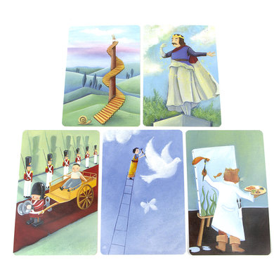 Что нарисовано на картинках — это отдельная тема для разговора. Представьте себе, что Сальвадор Дали и Антуан де Сент-Экзюпери собрались вместе и решили: «Дай-ка наколбасим колоду карт для игры 21 века». Да непросто наколбасим, а «я, ..., щас им такое нарисую...» Вот примерно что-то в таком духе.