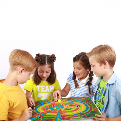 Итак, наши бегуны разминают свои лапы и хвосты. Глядя на эти юные чешуйчатые лица и глаза, полные огня, мы еще раз убеждаемся, что у динозавров есть будущее! Каждый участник выбирает фигурку динозаврика и устанавливает его на стартовое деление дорожки такого же цвета. На поле выставляются барьеры, кусты и трамплины. Барьеры преграждают путь всем динозаврикам, а кусты — динозаврикам, бегущим по определенной дорожке. Трамплины помогают высоко прыгать, чтобы вырваться вперед. Перед тем, как начать гонку, нужно определить, сколько кругов вы готовы бежать. Цель игры: первым преодолеть указанную дистанцию. Участники ходят по очереди.