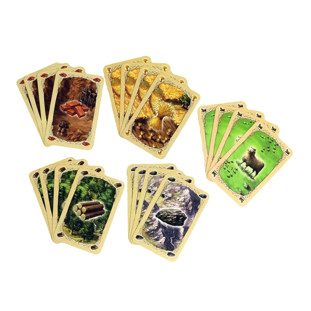 В вашем распоряжении (после открытия коробки, естественно) оказываются две колоды: одна - с ресурсами, другая - с картами развития. Ресурсы тщательно перемешиваются и укладываются в аккуратную стопочку – с ее помощью, а также с помощью рынка (5 карт ресурсов, выложенные «лицом» вверх) и воровства у других колонизаторов, вы будете добывать вожделенное сырье. Карты развития раскладываются по типам воткрытую, и, ориентируясь по памятке, участники скидывают в сброс нужные для того или иного вида развития ресурсы. Готовьтесь разбираться в нюансах: как строить дороги, как нанимать рыцарей, как использовать Карту Судьбы и так далее, и тому подобное. Однако будьте уверены, что за одну-две партии вы выучите правила наизусть, и даже памятка не понадобятся – эта игрушка понятна буквально на интуитивном уровне.