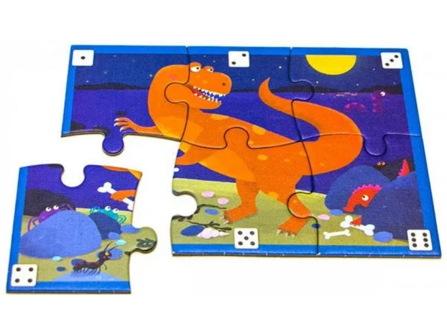 Подробнее«Мои Динозавры» — это детская настольная игра — пазл, в которой участники собирают картинки с изображением динозавров из крупных картонных элементов.