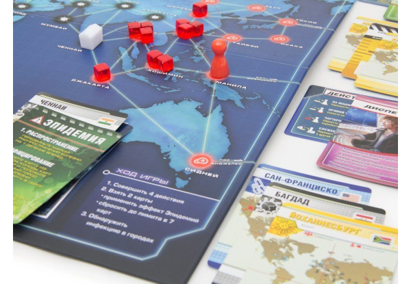 После этих трех фаз, ход передается следующему игроку. Помните, что Пандемия – кооперативная игра, а значит, свои ходы вы можете и должны обсуждать с другими игроками, ведь у вас единая цель – победить вирусы. Не стесняйтесь проговаривать свои планы вслух.