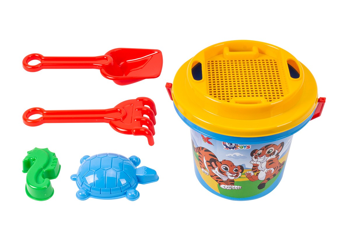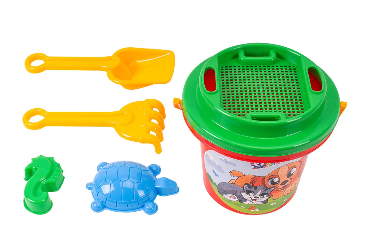 ПодробнееНабір для гри в піску та саду. Яскраве відерко з веселим малюнком та зручною ручкою, лопатка, грабельки, 2 формочки для піску та сито. В ситі - 2 додаткові отвори для зручного носіння грабельок та лопатки.