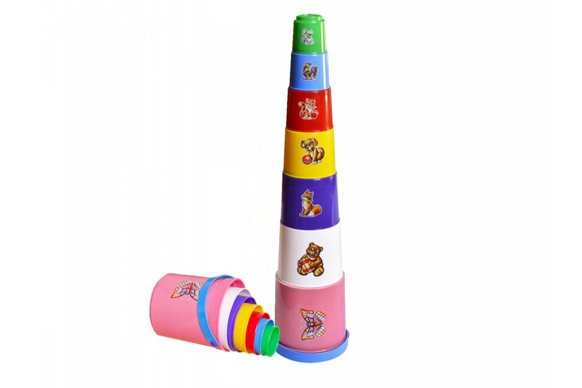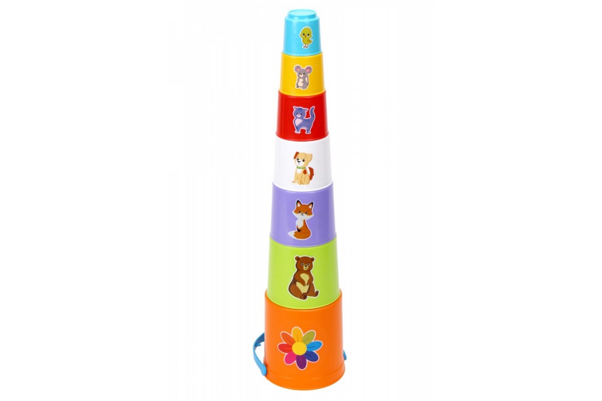 Подробнее6 різнокольорових формочок для піску, які малюк складає в пірамідку висотою 35 см або вкладає одну в одну. На кожній формочці - веселе звірятко.