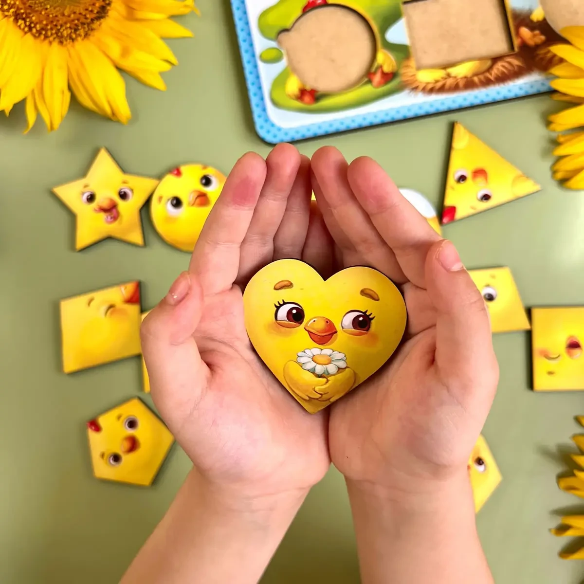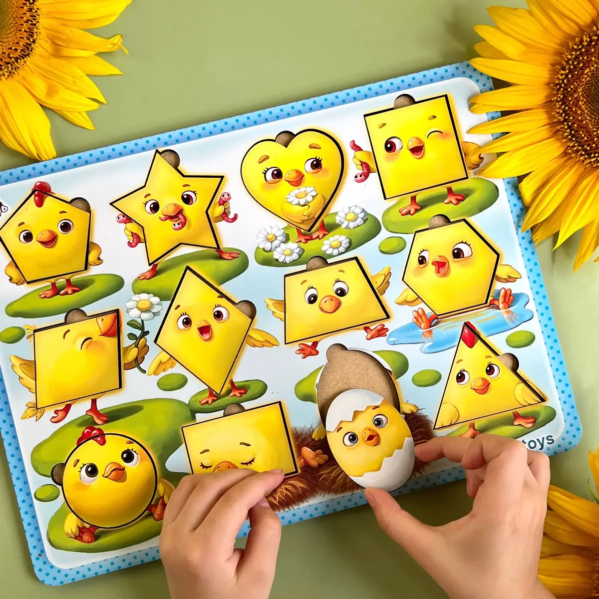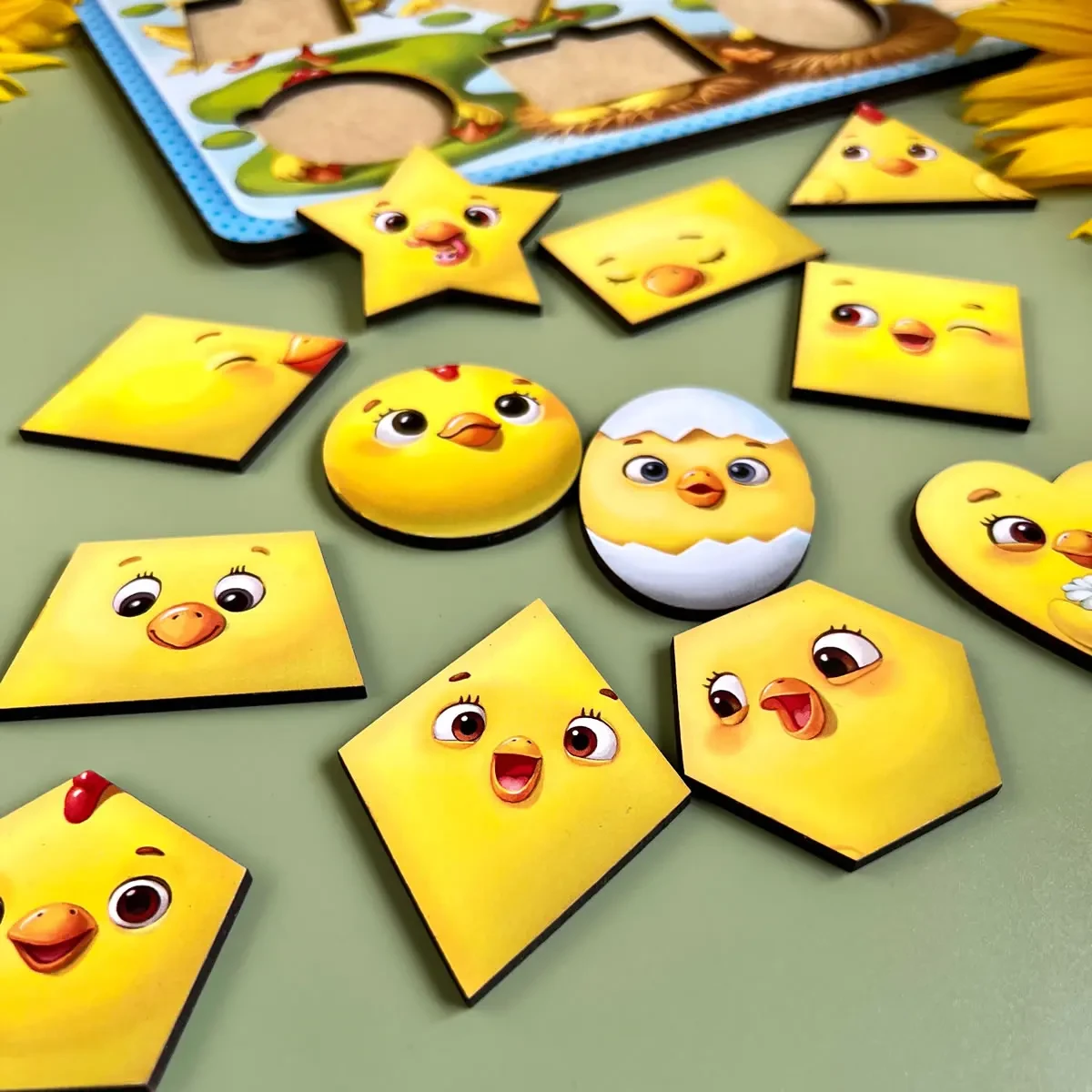 Развивающий деревянный пазл-вкладыш Цыплята-фигуры Ubumblebees
