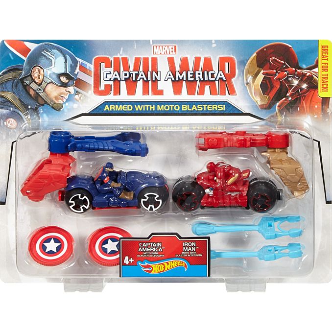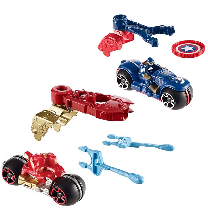 ПодробнееНе так давно поклонников комиксов режиссеры порадовали красочным фильмом о противостоянии Железного человека с Капитаном Америки — картина стала одной из самых захватывающих и кассовых за последнее время, кроме того, зрителями этой баталии стали даже самые маленькие поклонники жанра. Наш интернет-магазин предоставляет качественные игрушки от известных брендов, гарантируя их высокое качество — именно поэтому мы предлагаем купить набор супергероев на мотоциклах Hot Wheels. Игровой комплект включает в себя следующие детали: