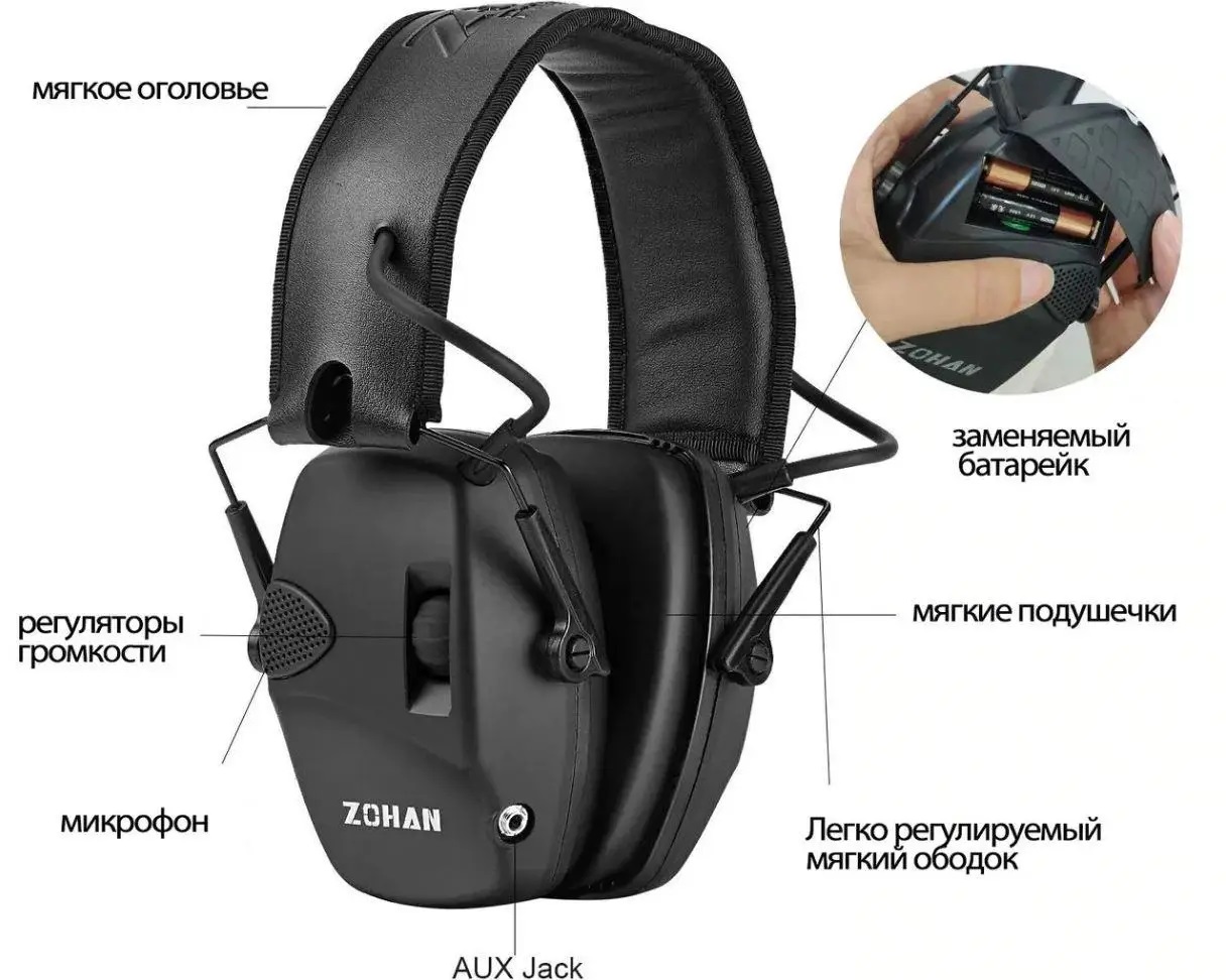 Тактические активные наушники с шумоподавлением для стрелков, военных с чехлом ZOHAN черные