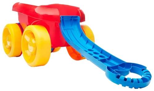 Ярко-красная тележка mega bloks CNK33 с желтыми колесами и синей ручкой станет отличным подарком.