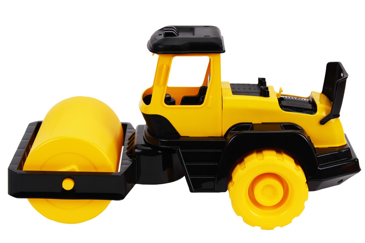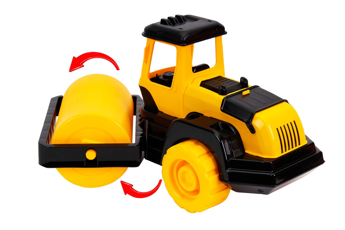 Особливість нового трактора - рухоме (шарнірне) з'єднання кабіни з моторним відсіком і робочої частини (кріплення котка-вальця). Як і в сучасних машинах такого типу, наш коток може трамбувати асфальт не тільки на прямих ділянках автодоріг, а і на з'їздах з автобанів, заїздах у двори і працювати на невеликих площадках. Великі міцні колеса дозволяють машині долати різноманітні перешкоди. У комфортній відкритій кабіні зручно розміститься улюблена іграшка. Кришка моторного відділу відкривається і малюк зможе оглянути двигун та вчасно провести обслуговування або ремонт.