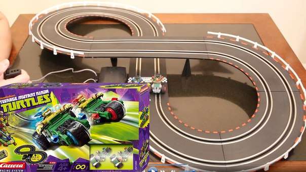 ПодробнееПочувствуй себя на гонках. Всеми любимые ниндзя покоряют скорость на гоночных автомобилях. Треком интересно играть как детям так и взрослым. В игровой набор входит наборная трасса, два автомобиля и управляющее устройство, с помощью которого вы выбираете скорость автомобиля. С треком можно играть вдвоем и получать победы.