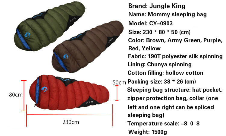 ПодробнееТуристический сверхлегкий спальный мешок Jungle King. Подходит на 4 времена года. Изготовлен из водонепроницаемой, грязеотталкивающей ткани.
